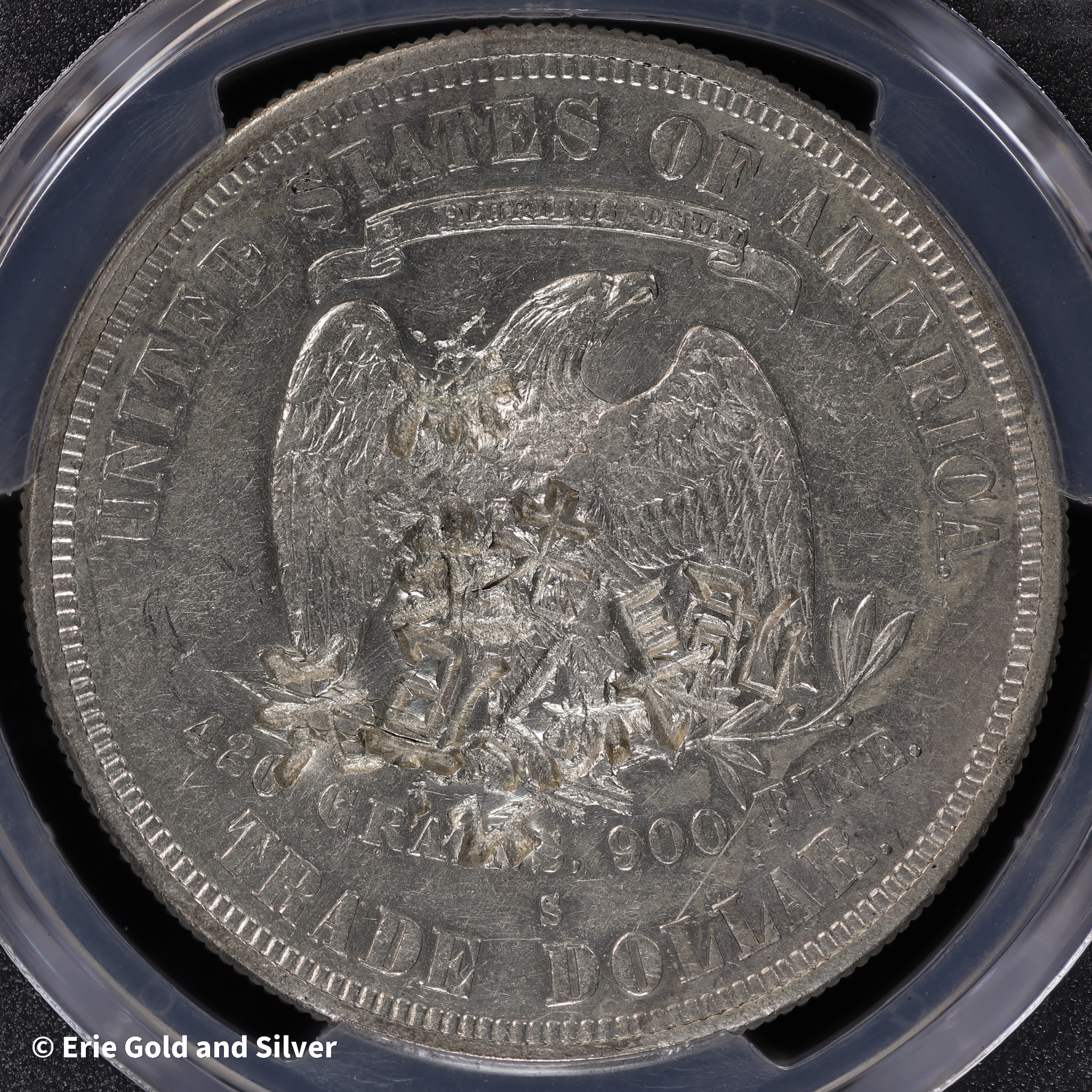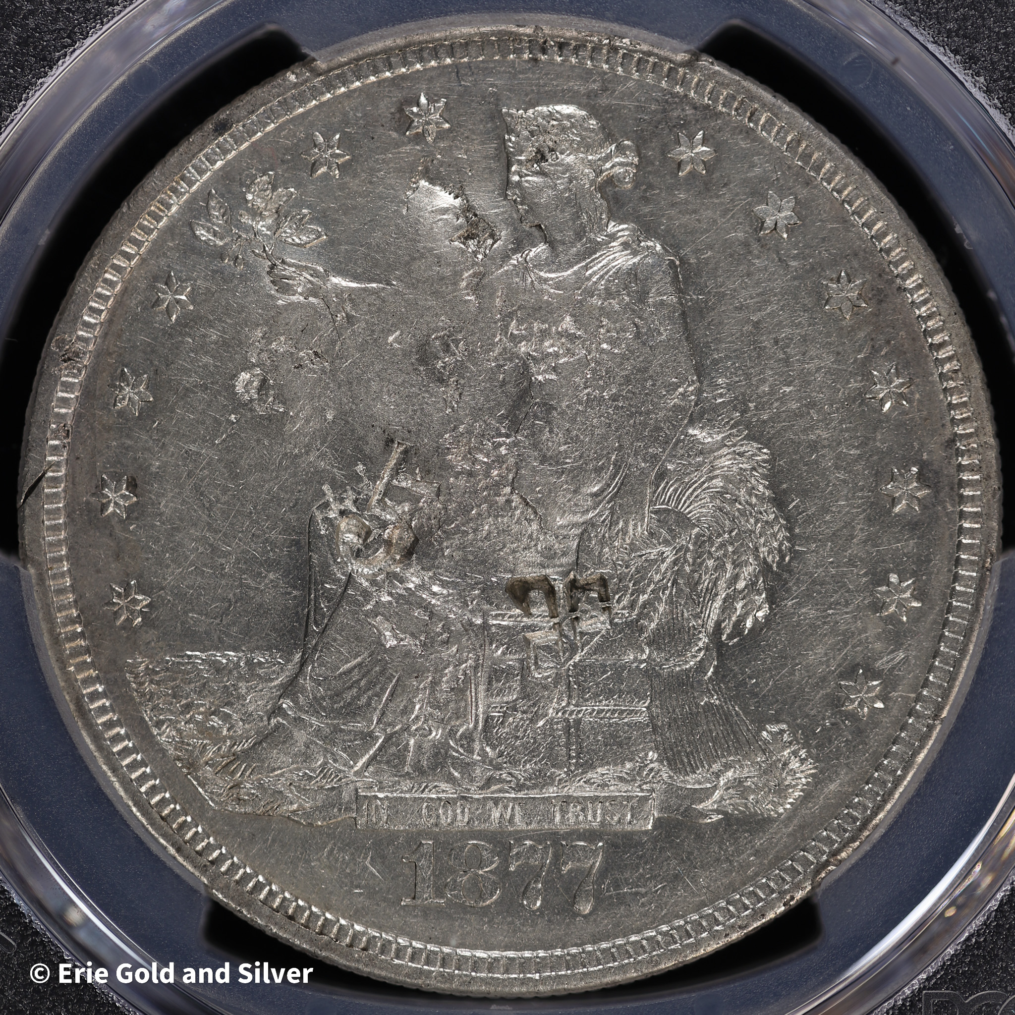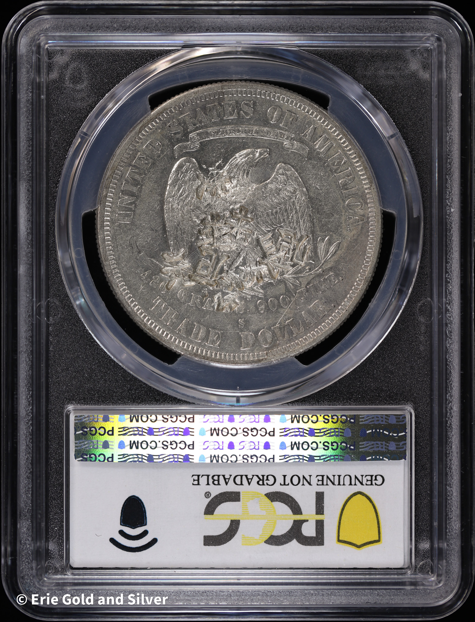 1877-S T$1 Silver Trade Dollar PCGS Genuine AU Detail (Cleaned) | Chopmarked