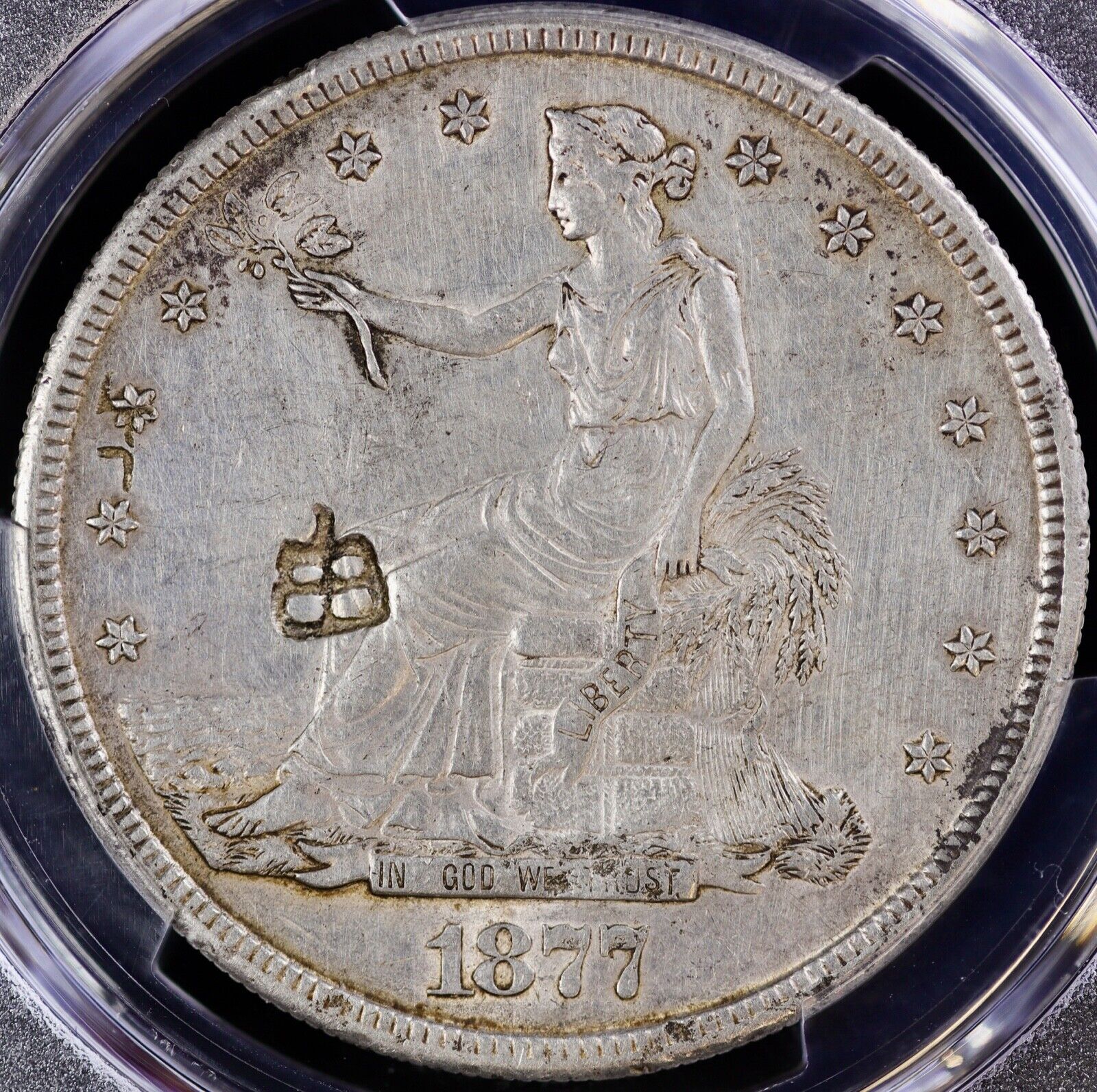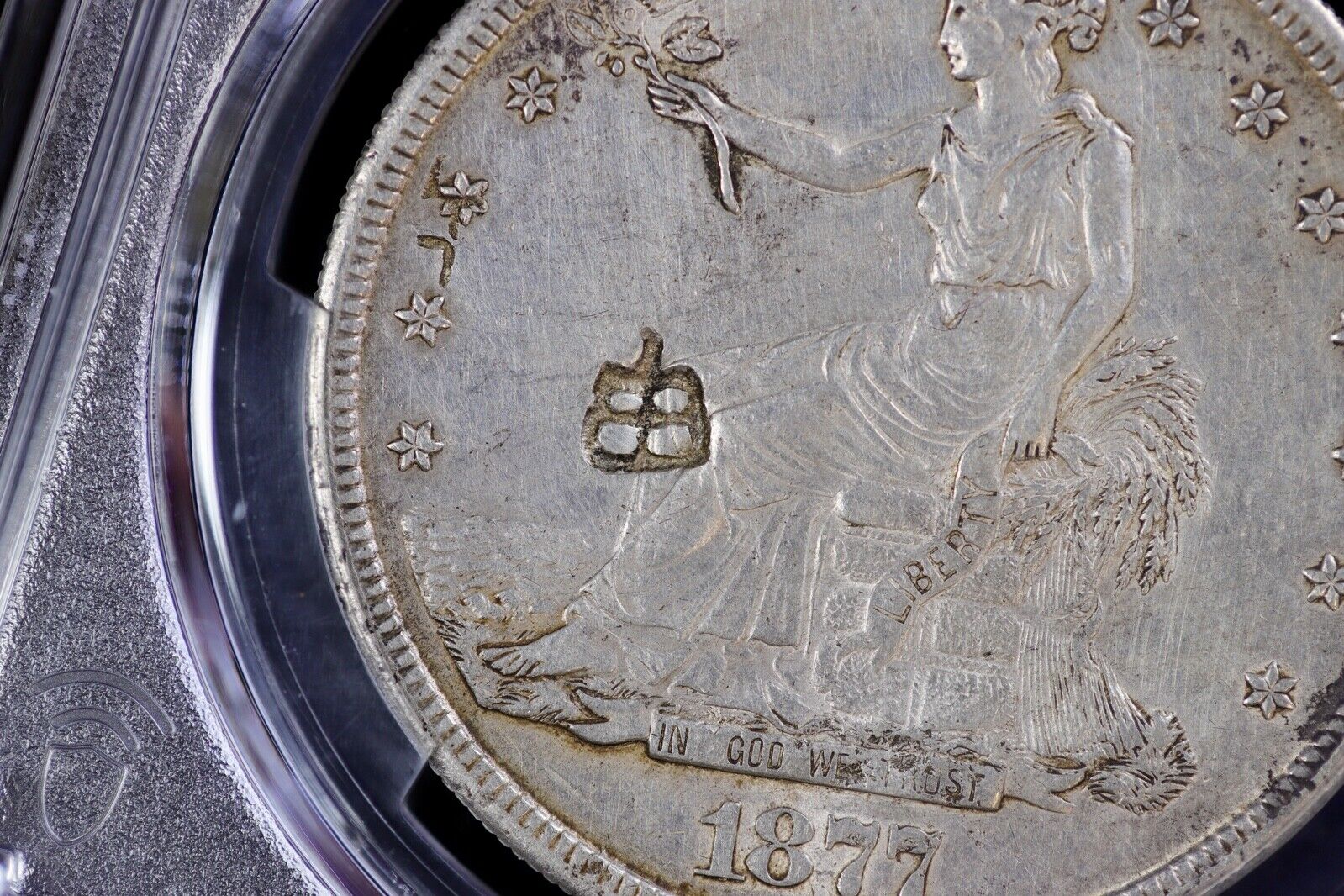 1877-S T$1 Silver Trade Dollar PCGS Genuine XF Detail | Chop Mark Error