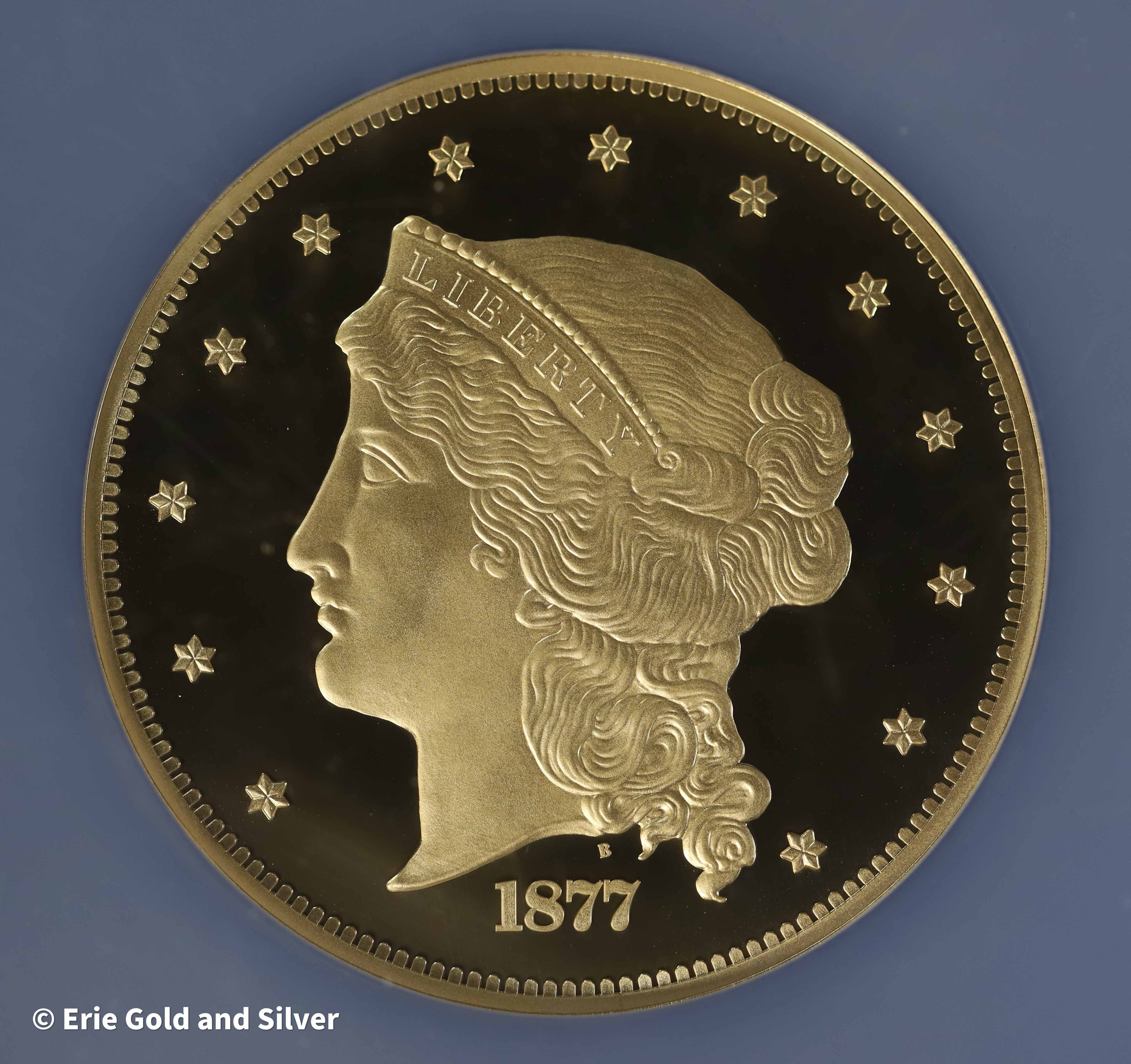 The 1877 William Barber Liberty Large Head 1/2 oz Gold Coin is a striking tribute to classic American coinage design. Crafted from 1/2 oz of .999 fine gold, this piece features the elegant Liberty portrait by renowned engraver William Barber, presented with the distinctive Large Head design. Graded a perfect PR 70, this flawless proof example offers exceptional detail and mirror-like surfaces, making it a standout addition for collectors of historic-inspired gold coins and high-grade numismatic pieces.