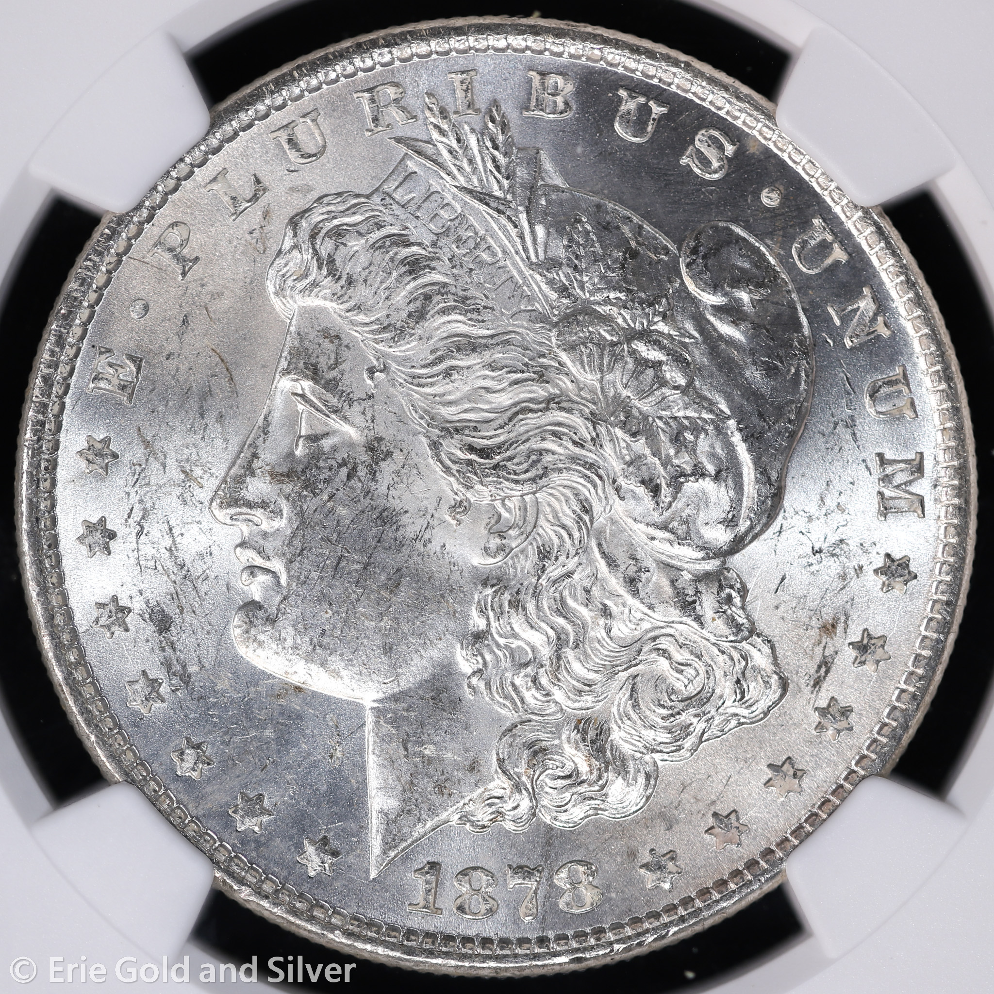 For sale is a 1878-P 8TF Morgan Silver Dollar. Certified / graded by NGC at MS 61.