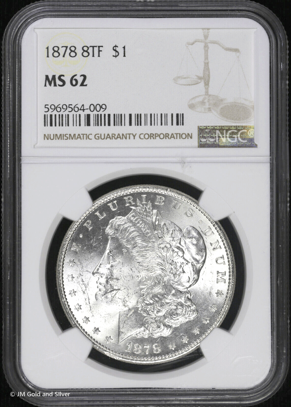 1878-P $1 8TF Morgan Silver Dollar NGC MS 62 | Uncirculated UNC