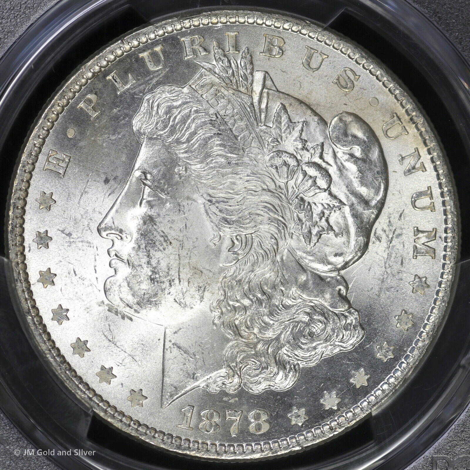 1878-P 8TF $1 Morgan Dollar PCGS MS 62 | 8 Tail Feathers Uncirculated UNC