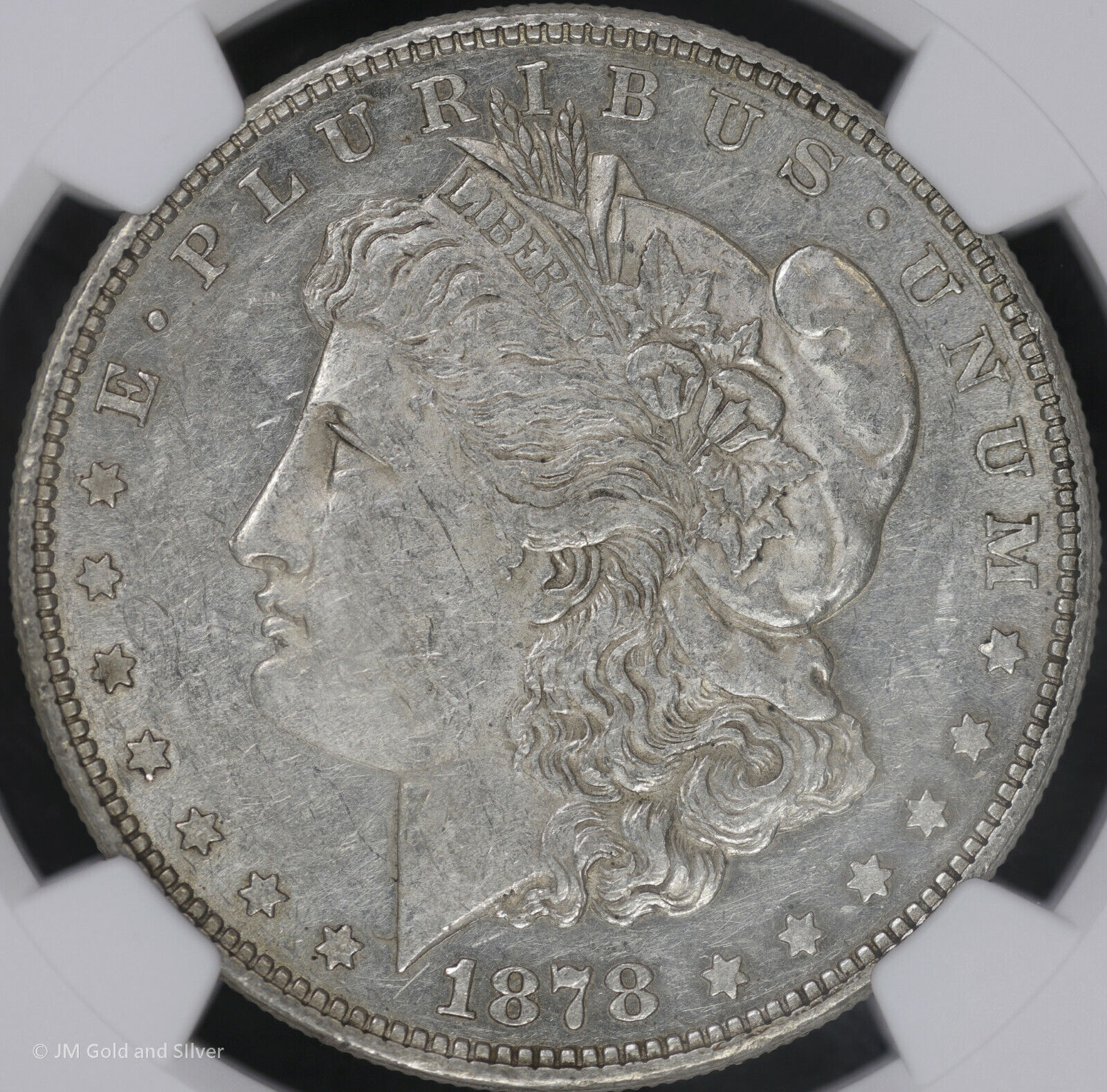 1878 P 8TF Morgan Dollar NGC AU 55 VAM9 First Die Marriage TOP 100 Tail Feathers