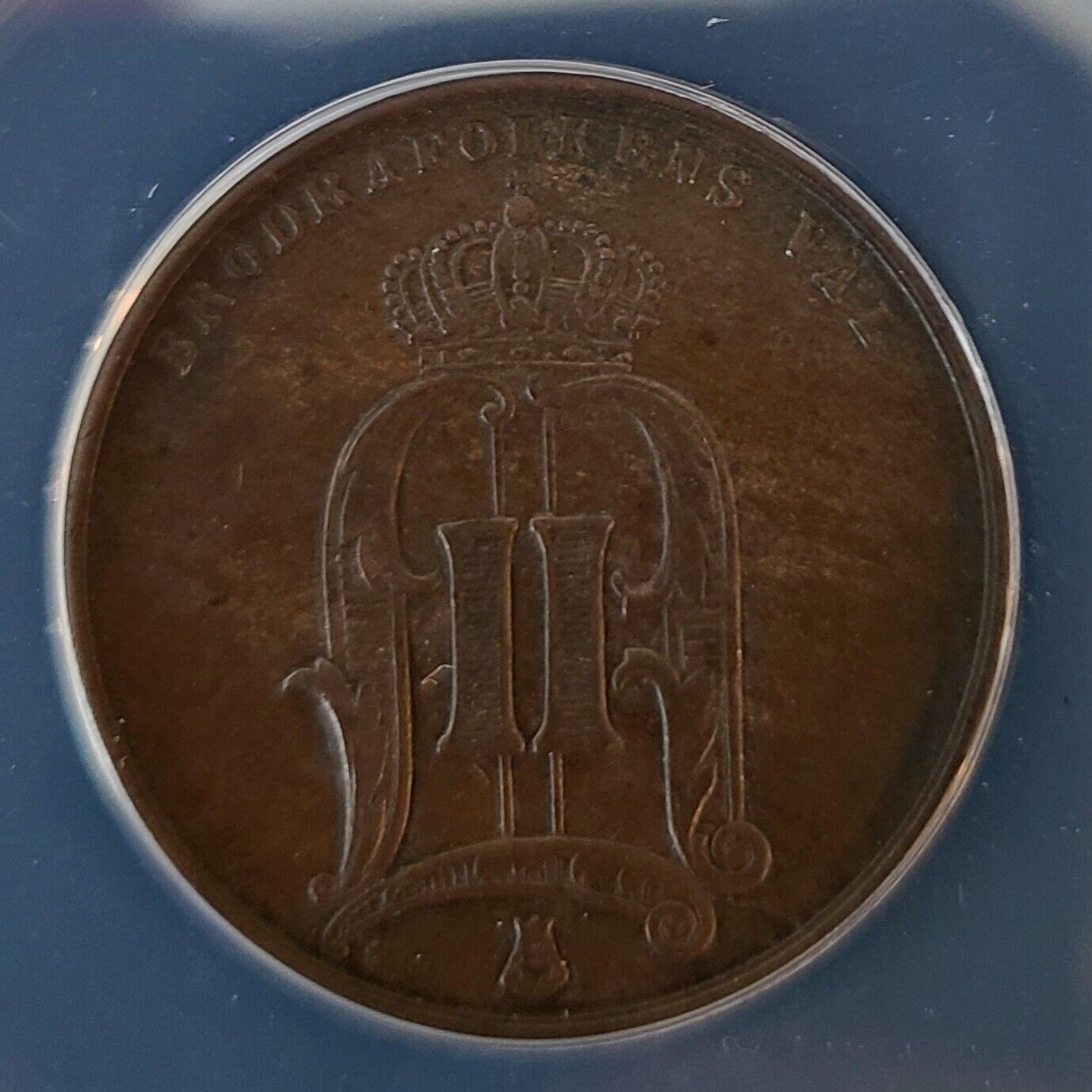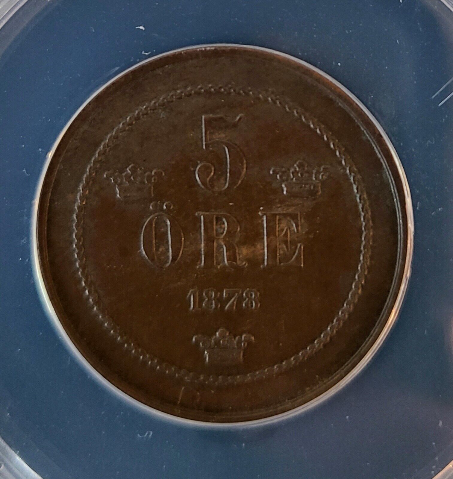 1878 Sweden Oscar II 5 Ore Copper Crown Coin ANACS EF 45 XF Brodrafolkens