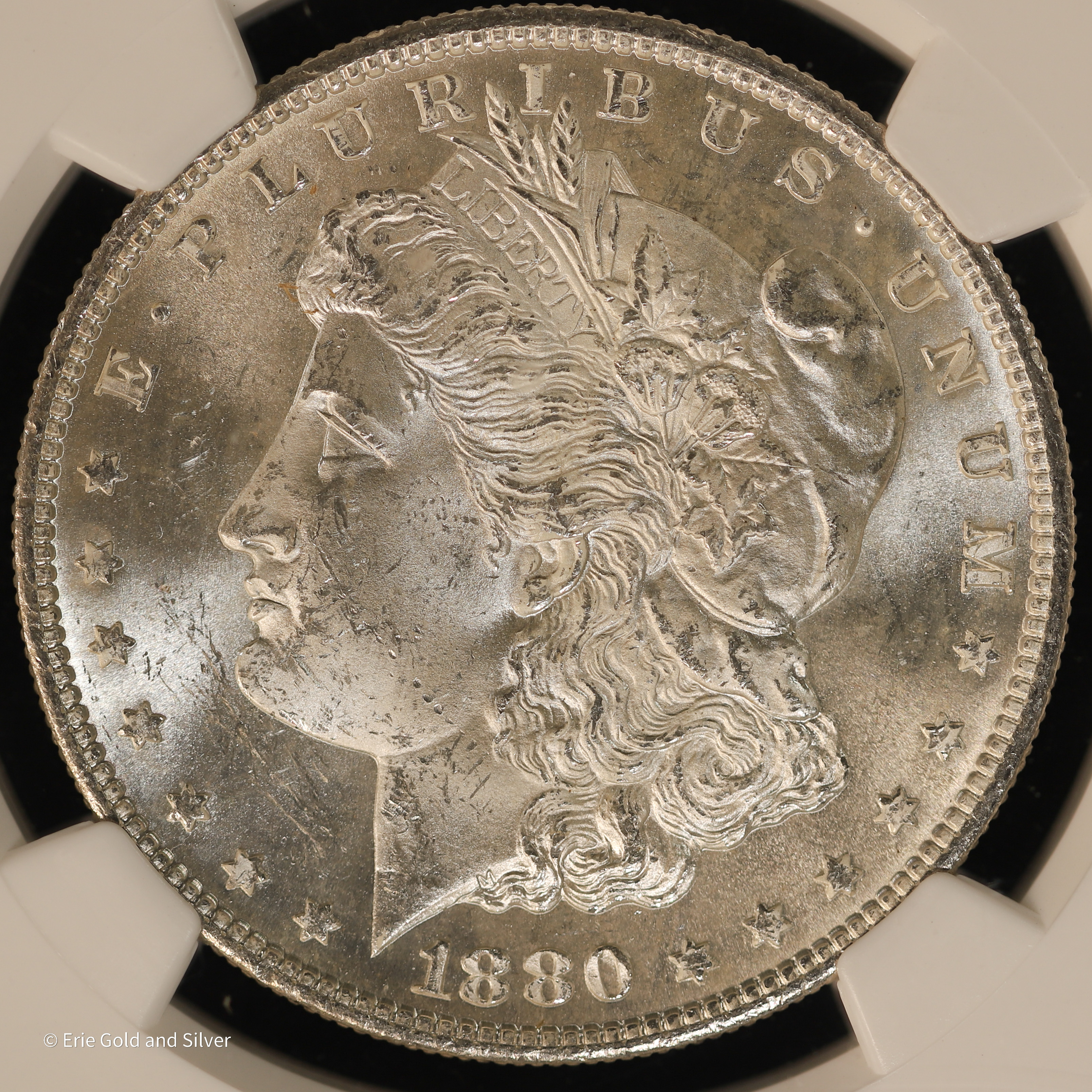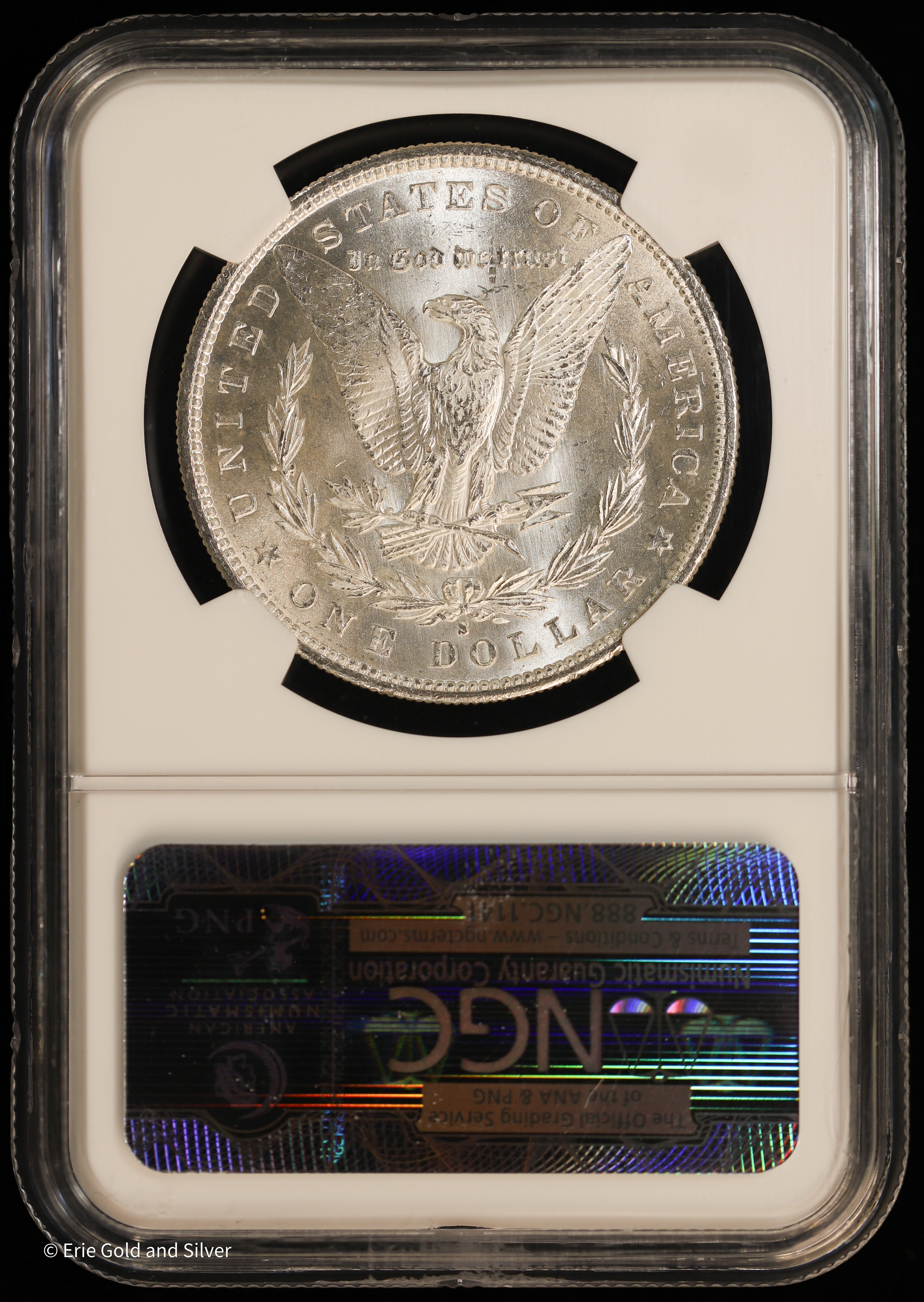 For sale is a 1880/9 S $1 Morgan Silver Dollar Hot-50 Vam-11 Medium S. Graded / Certified by NGC at MS 63.