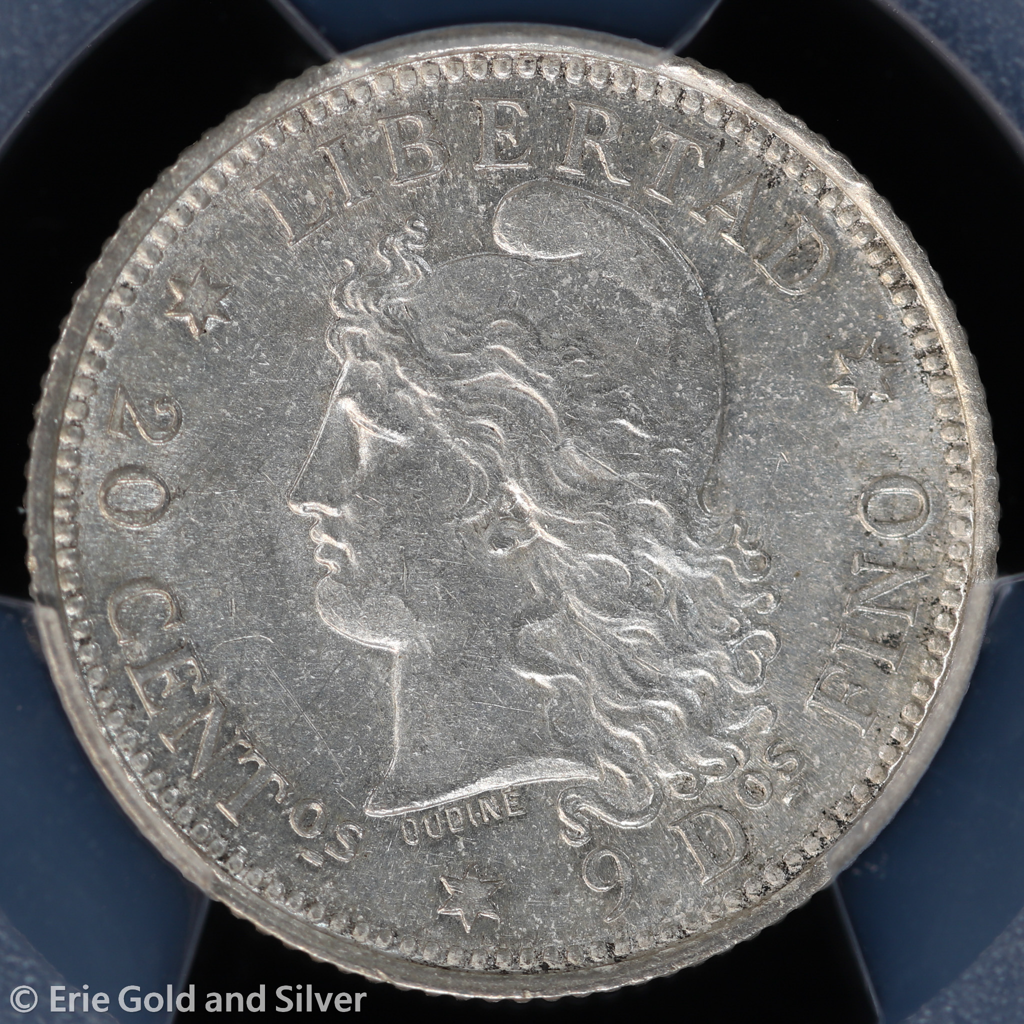 1882 Argentina Silver 20 Centavos Coin PCGS MS 61