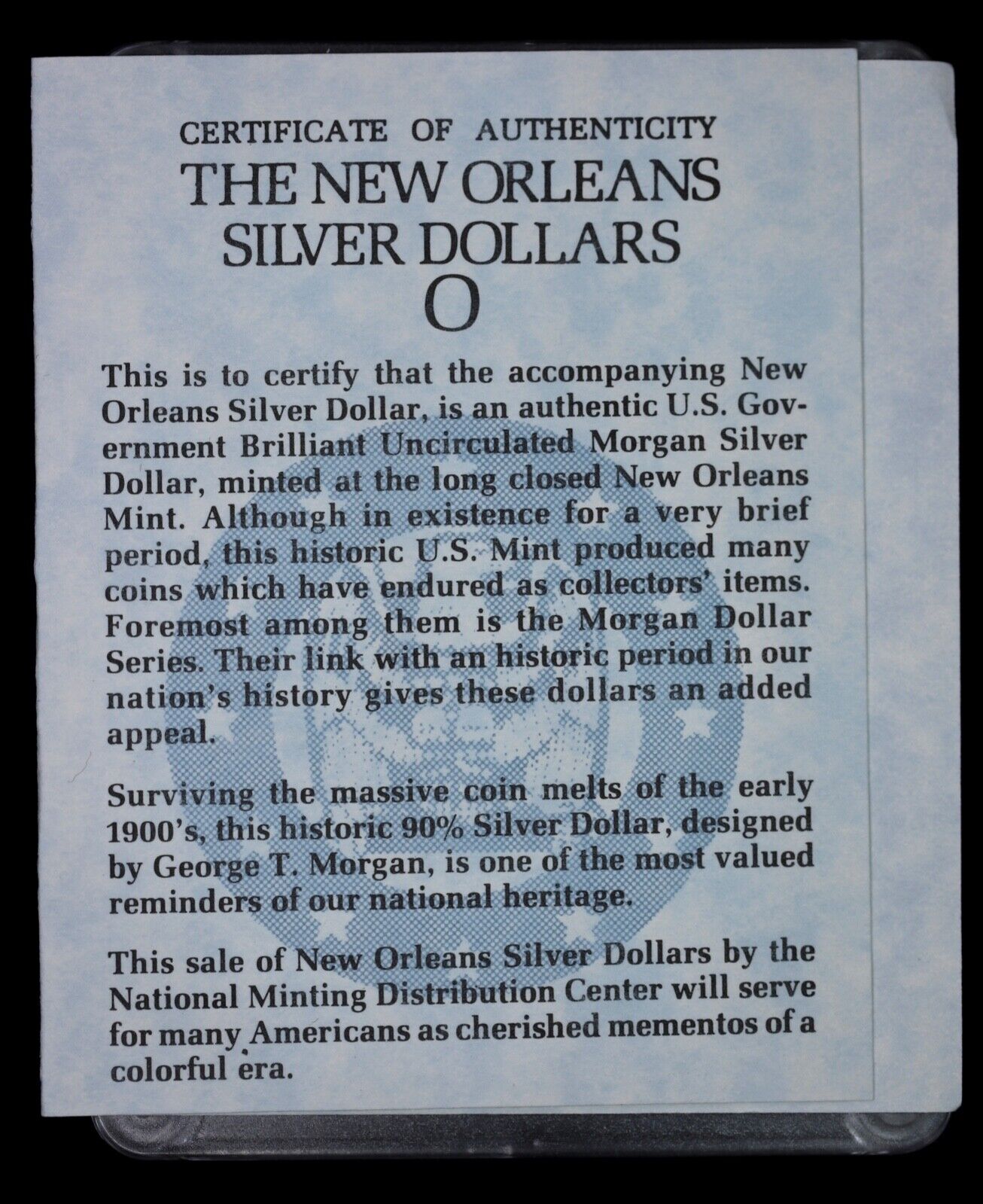 1883-O Morgan Silver Dollar $1 Capital Plastic Holder w/ COA BU Uncirculated UNC