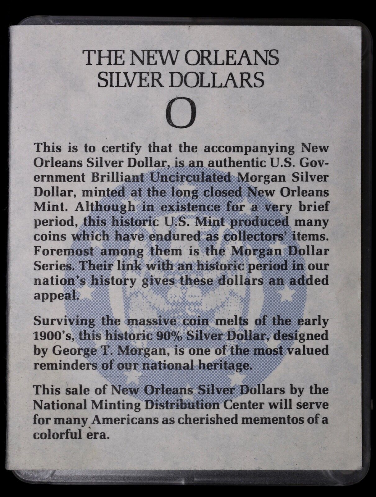 1883-O Morgan Silver Dollar $1 Capital Plastic Holder w/ COA BU Uncirculated UNC