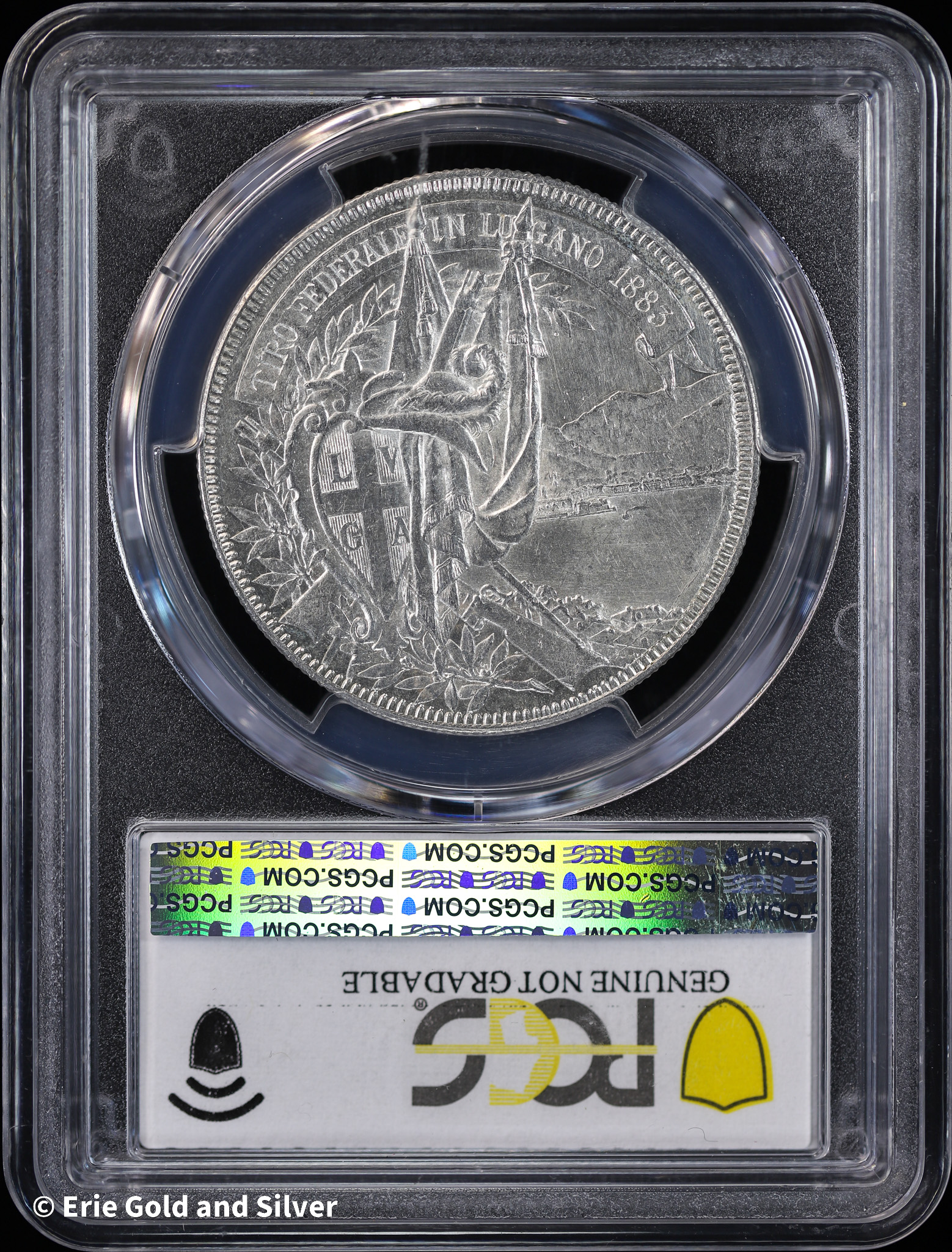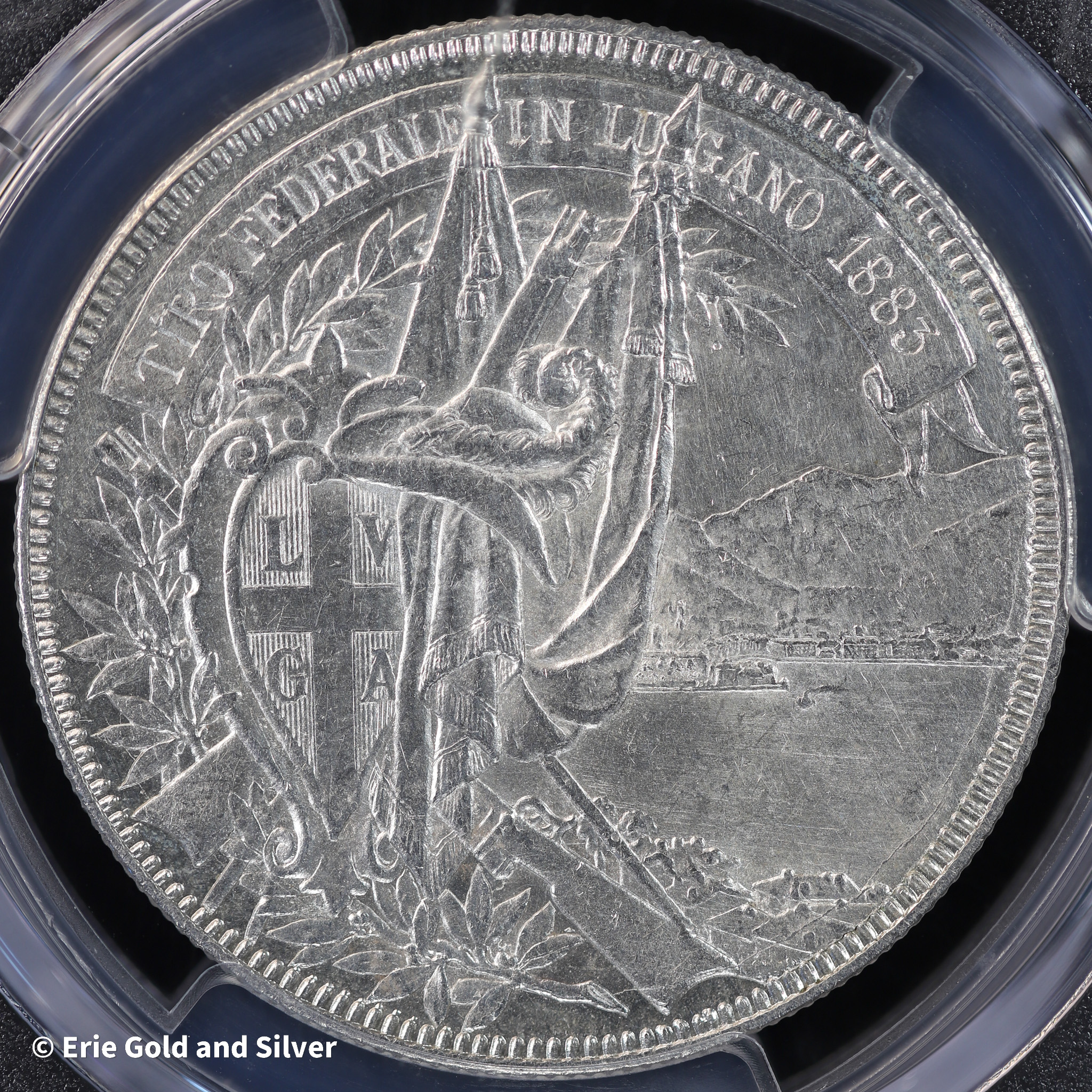 1883 Swiss Shooting Thaler PCGS UNC Detail (Cleaned) | Lugano R-1373
