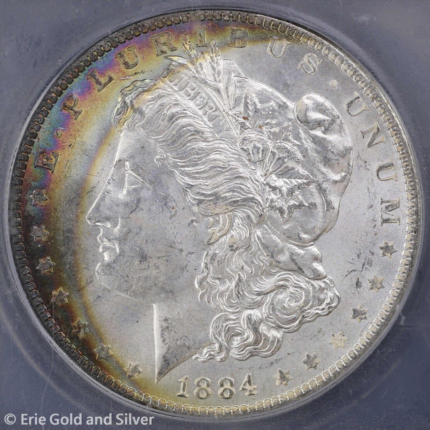 1884-O $1 Morgan Silver Dollar ICG MS 64 | Rainbow Crescent Monster Toned