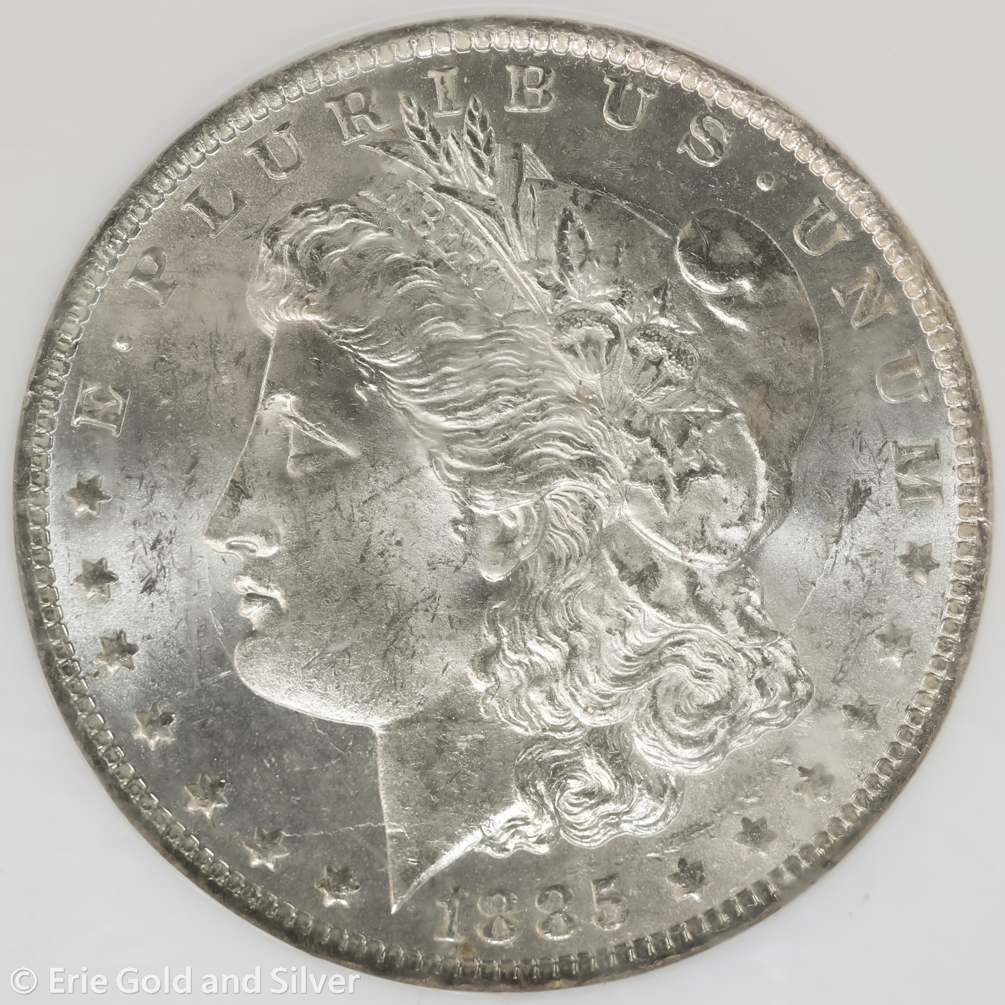 For sale is a 1885-O Morgan Silver Dollar. Certified / graded by NGC at MS 63.