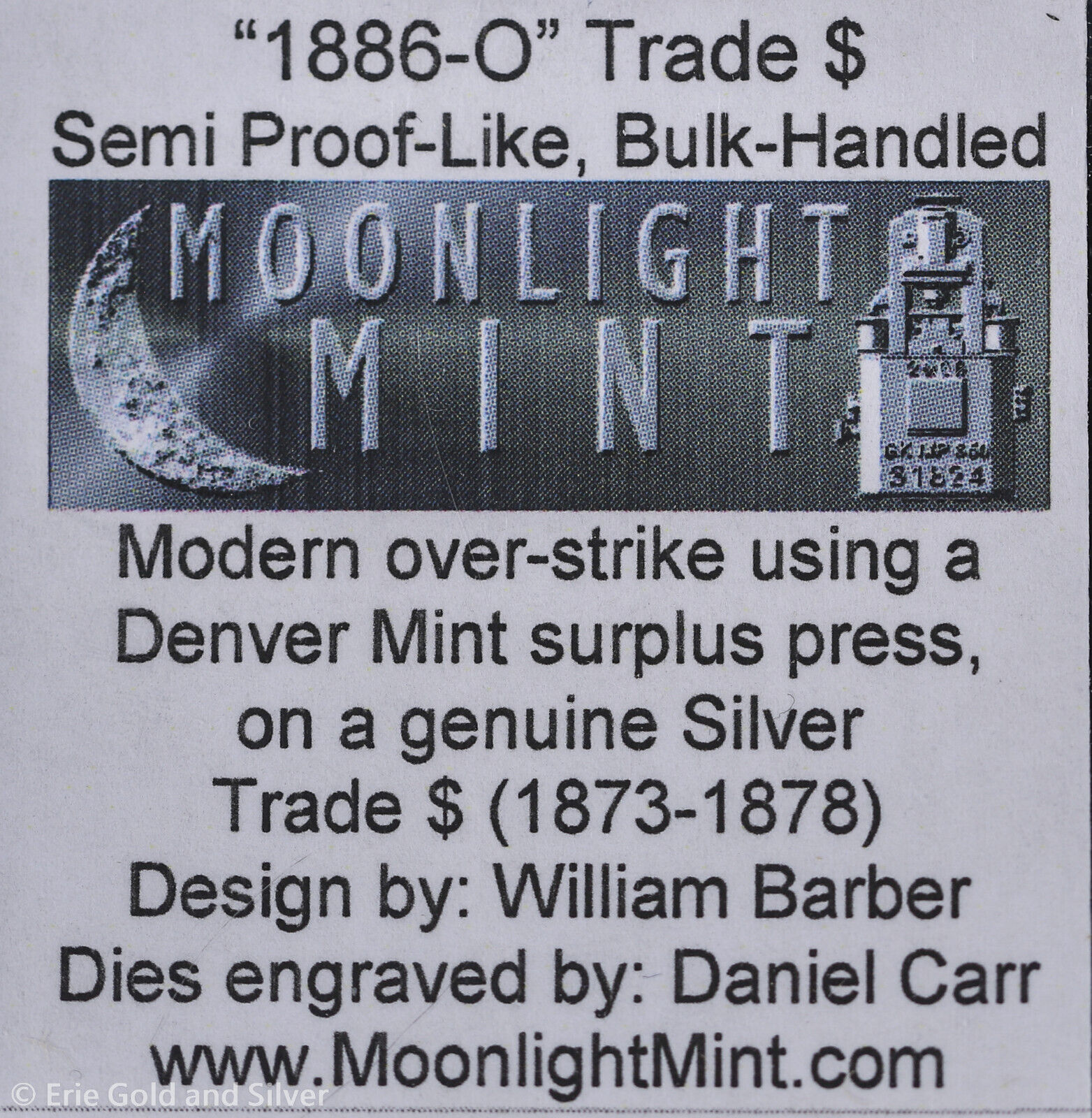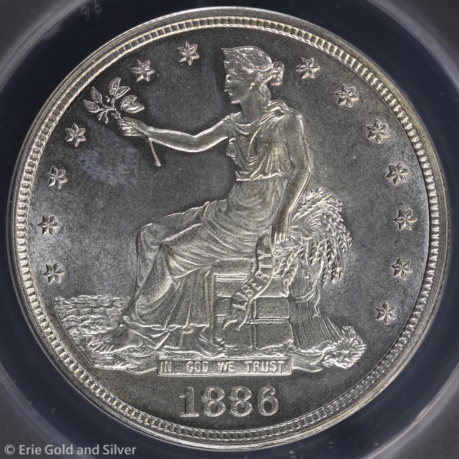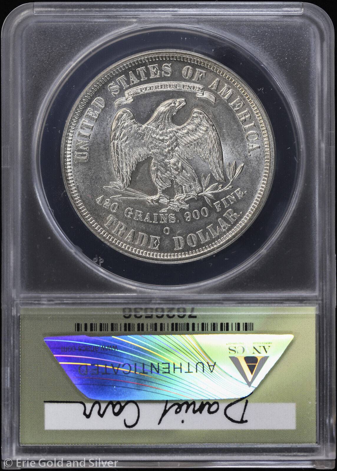 1886-O Dan Carr Silver Trade Dollar Overstrike Token ANACS MS 63 | O/S on USA