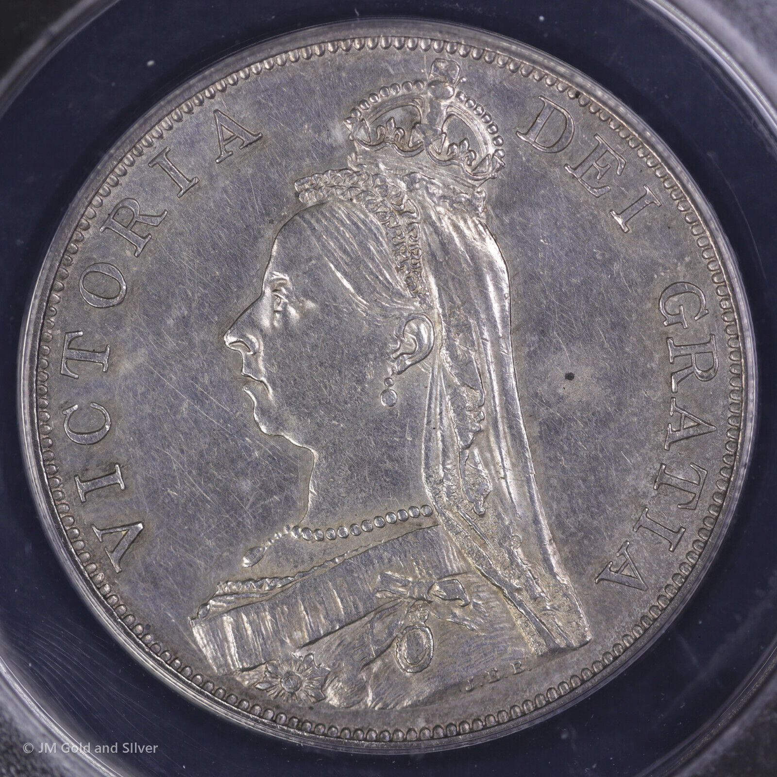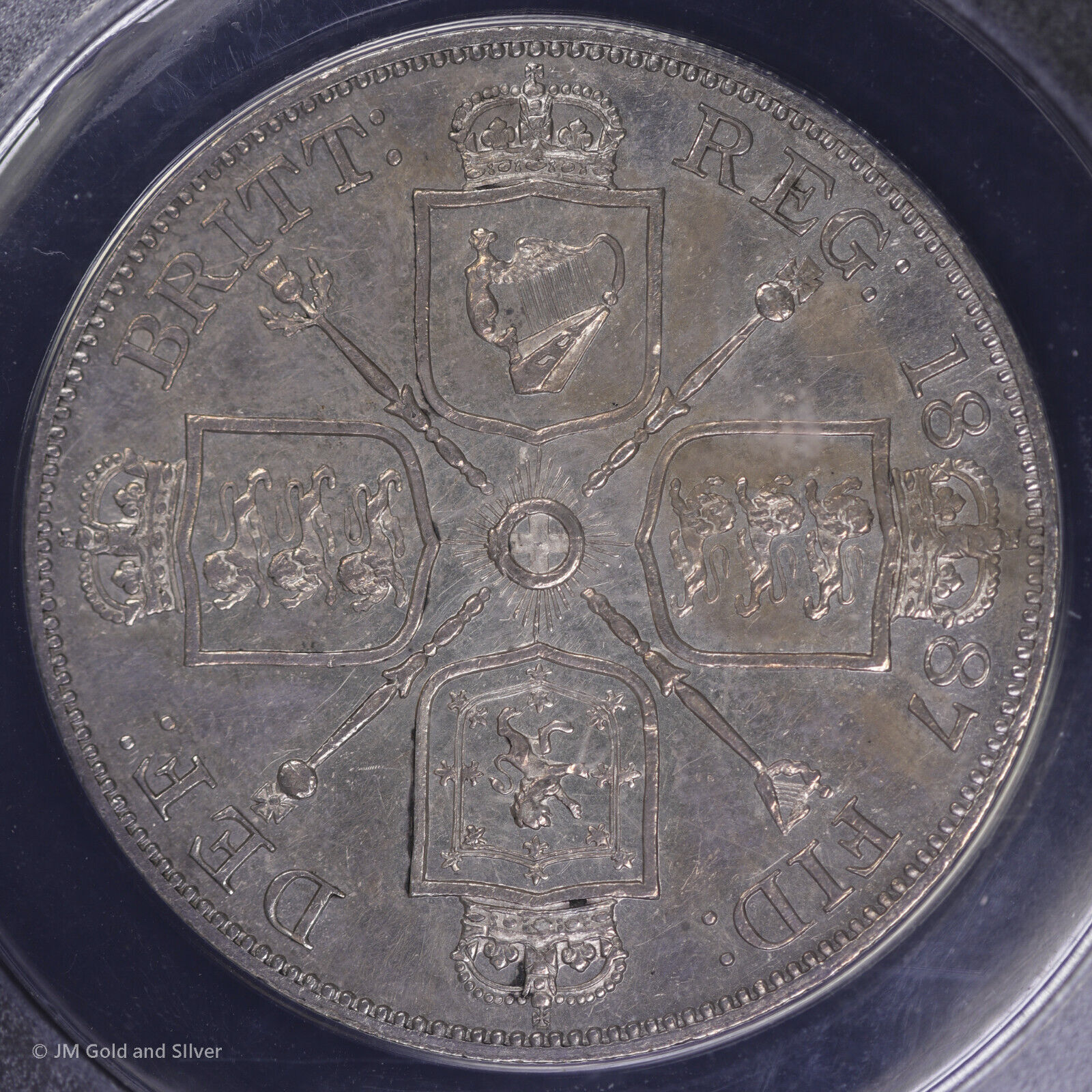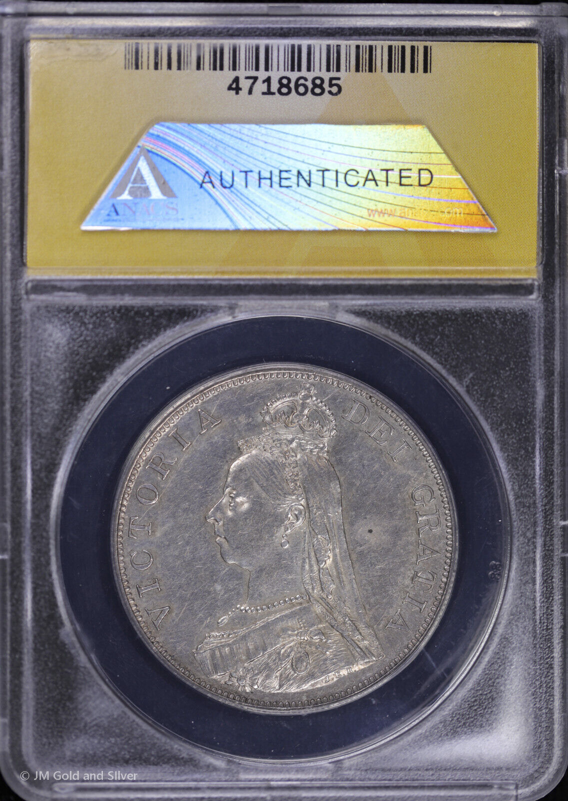 1887 2FLOR Great Britain Silver 2 Florin Arabic 1 ANACS AU 58 Details