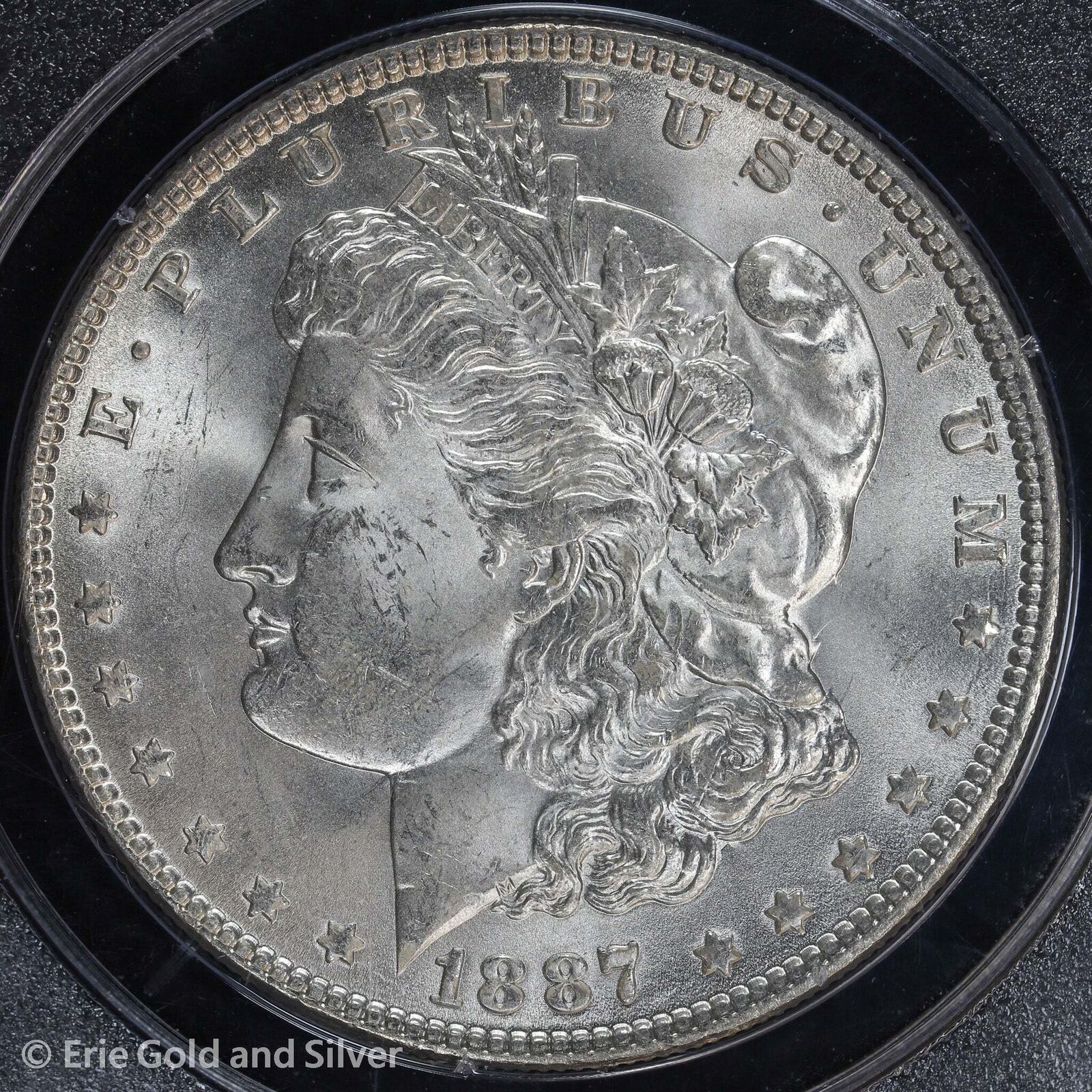 1887-P $1 Morgan Silver Dollar PCGS MS 63 CAC | Rattler Holder Uncirculated UNC