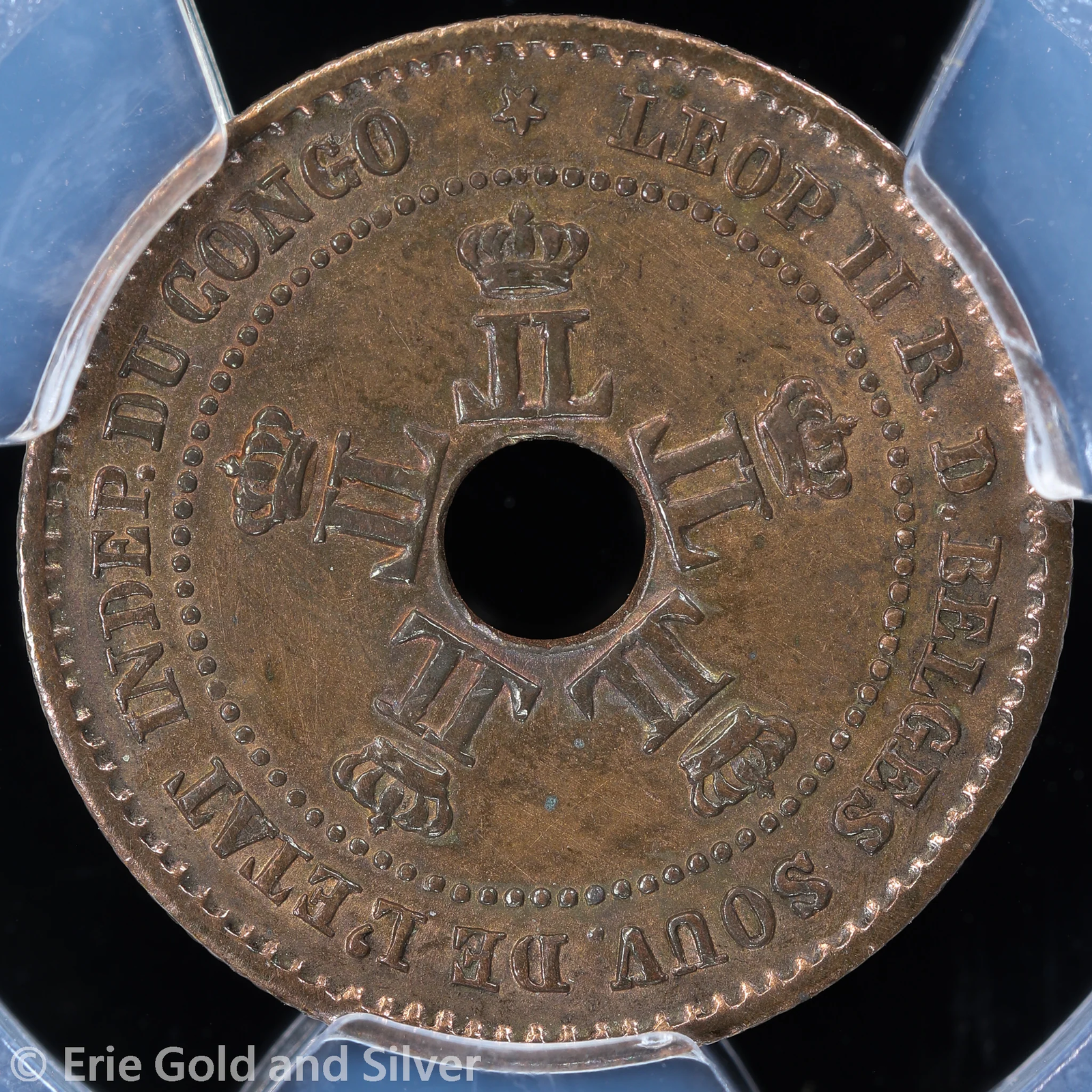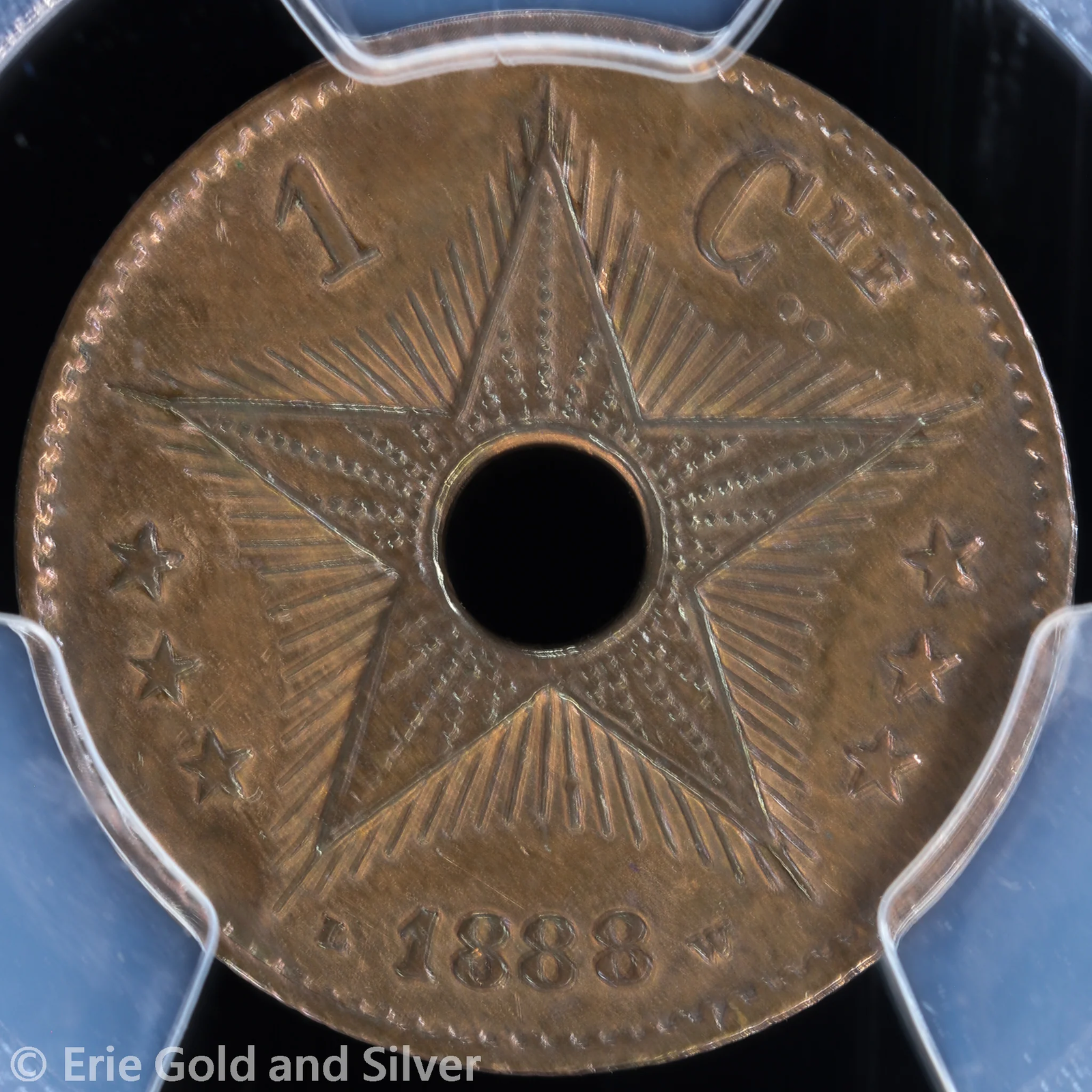 1888 1C Congo Léopold II 1 Centime PCGS Genuine UNC Detail