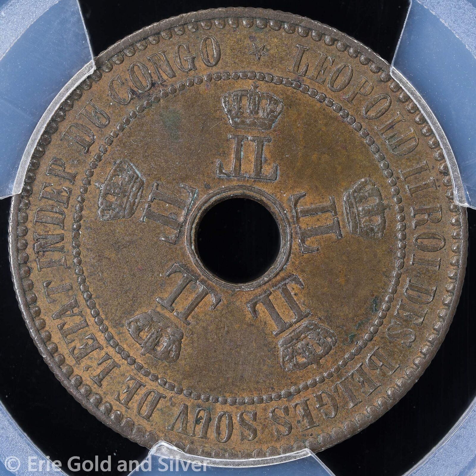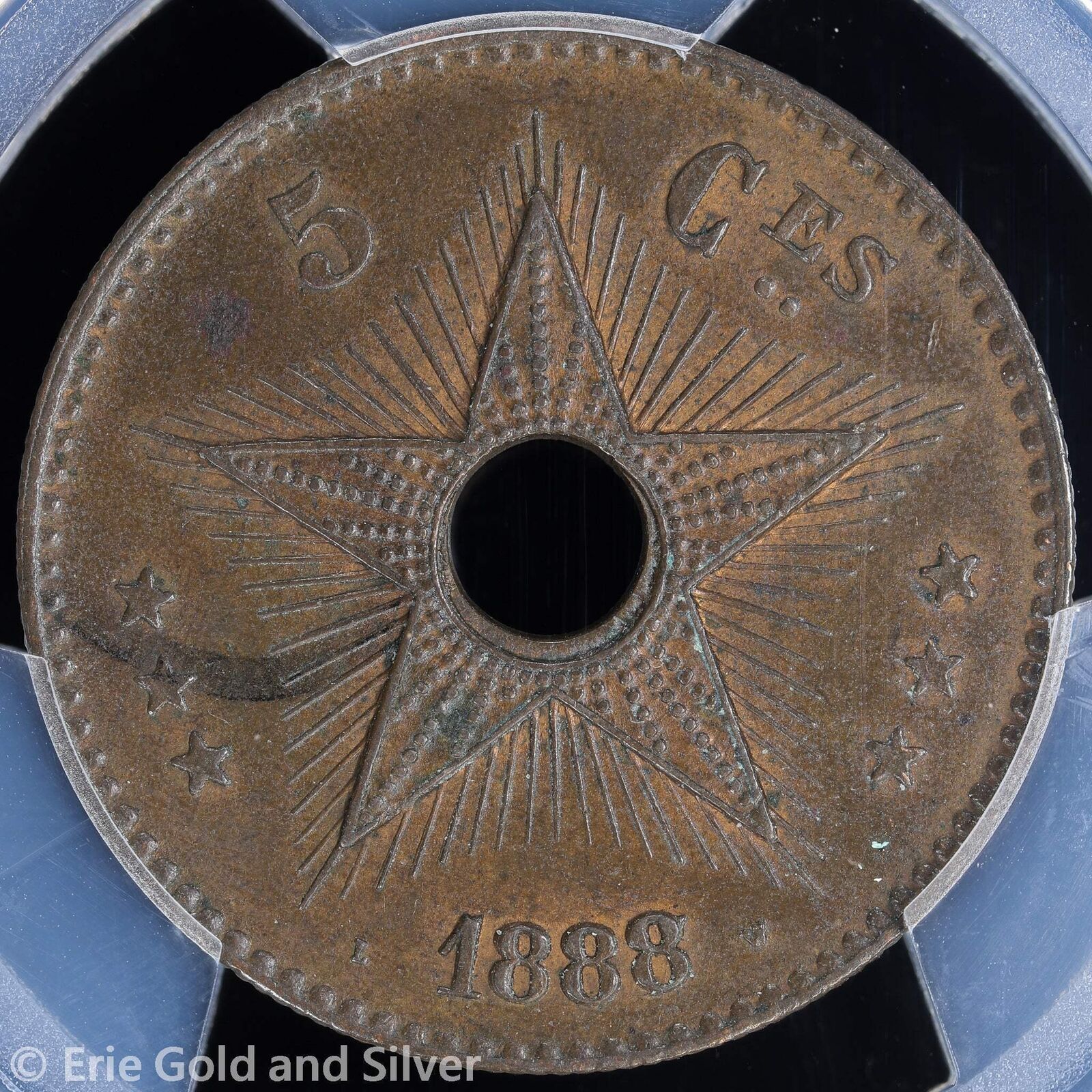 1888/7 5C Congo Léopold II 5 Centimes PCGS MS 62 BN | Uncirculated UNC