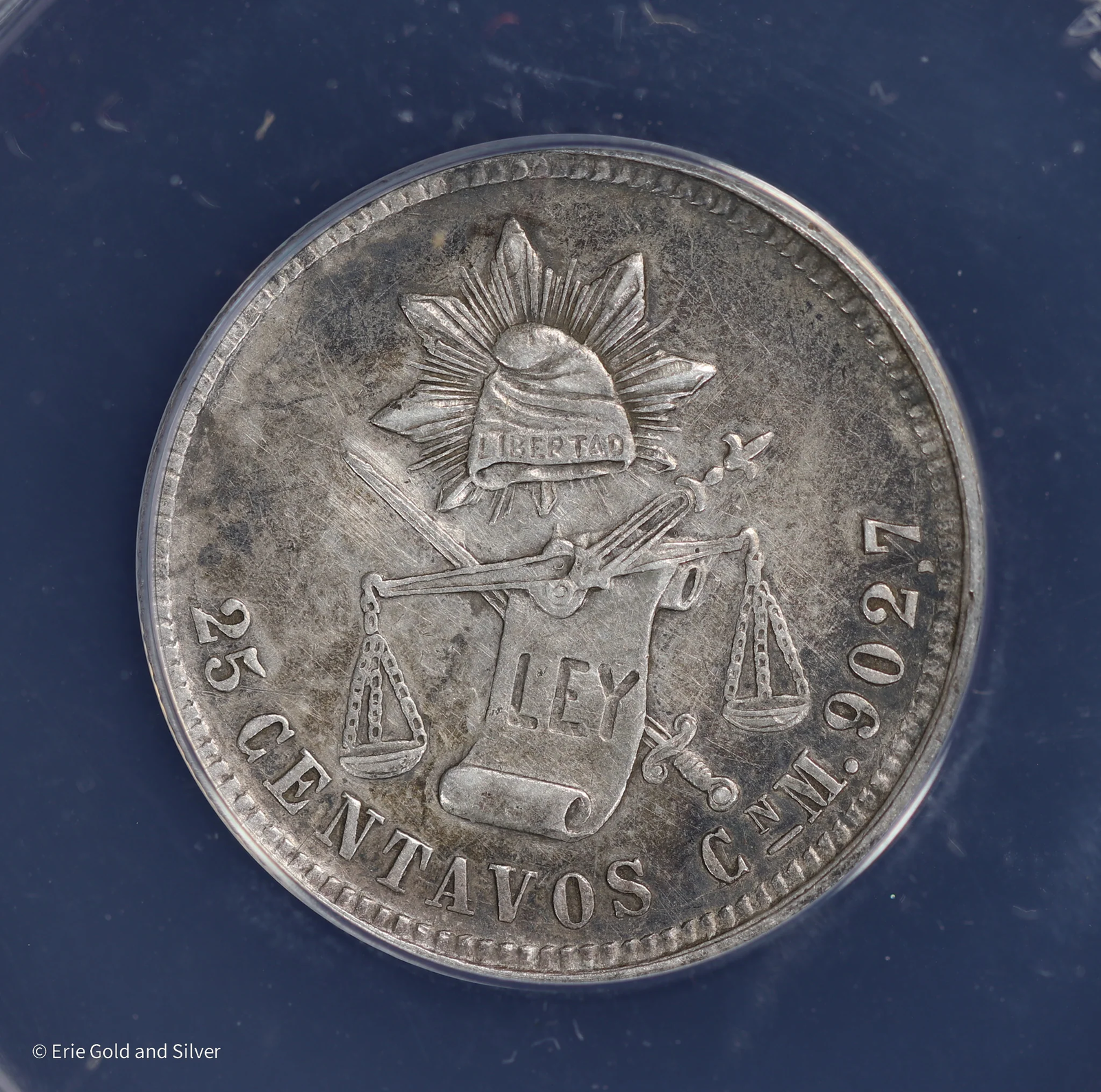 1888-Cn, M 25C Mexico Silver 25 Centavos ANACS AU 50