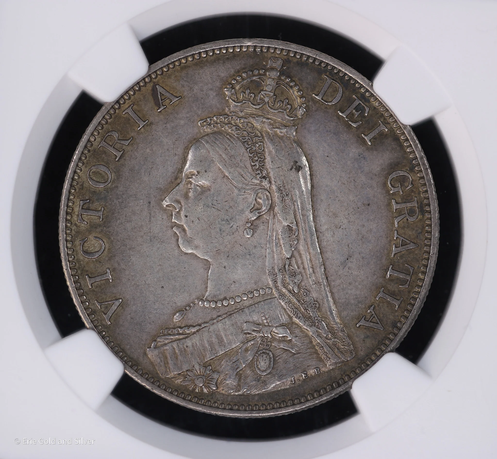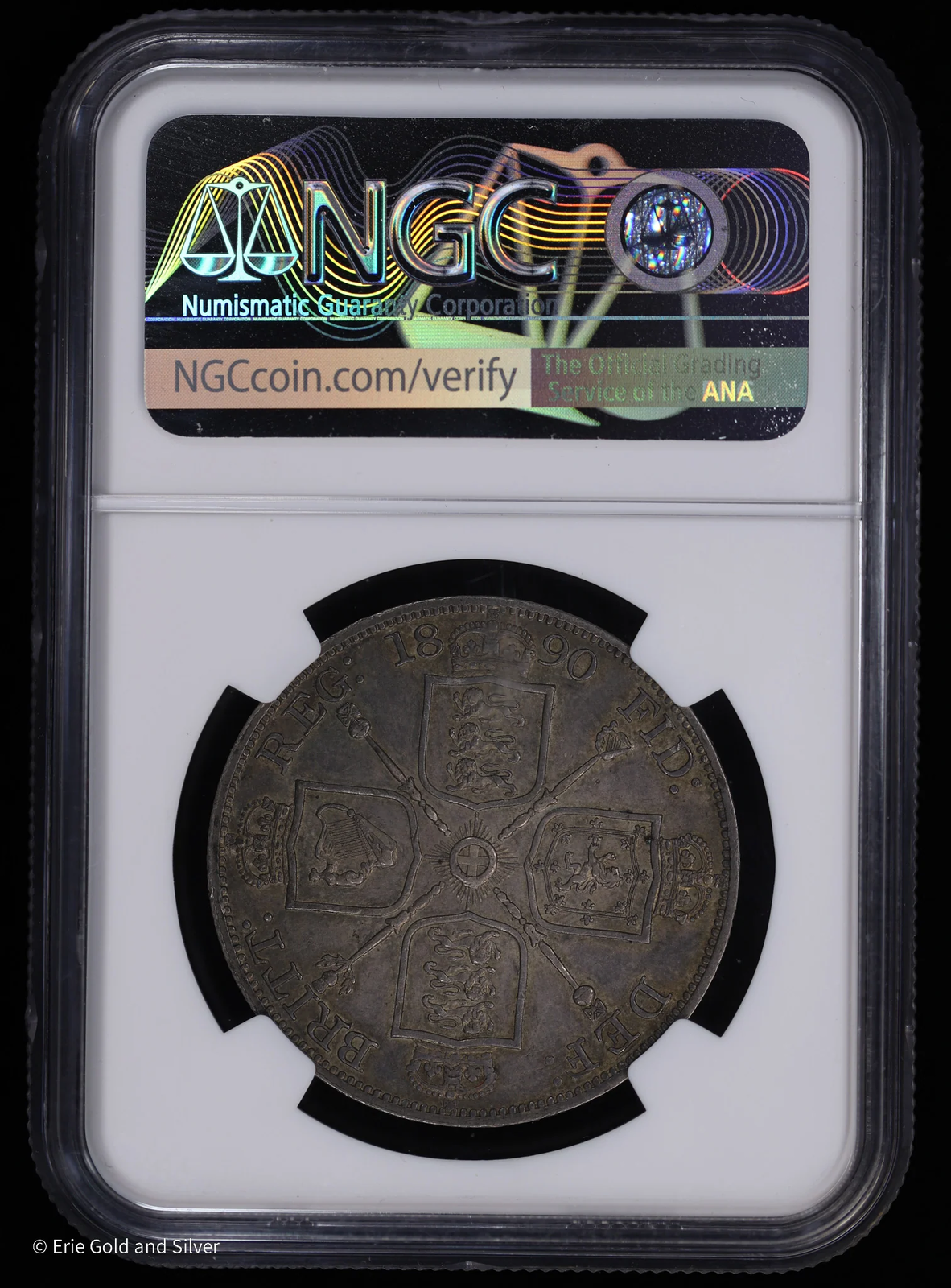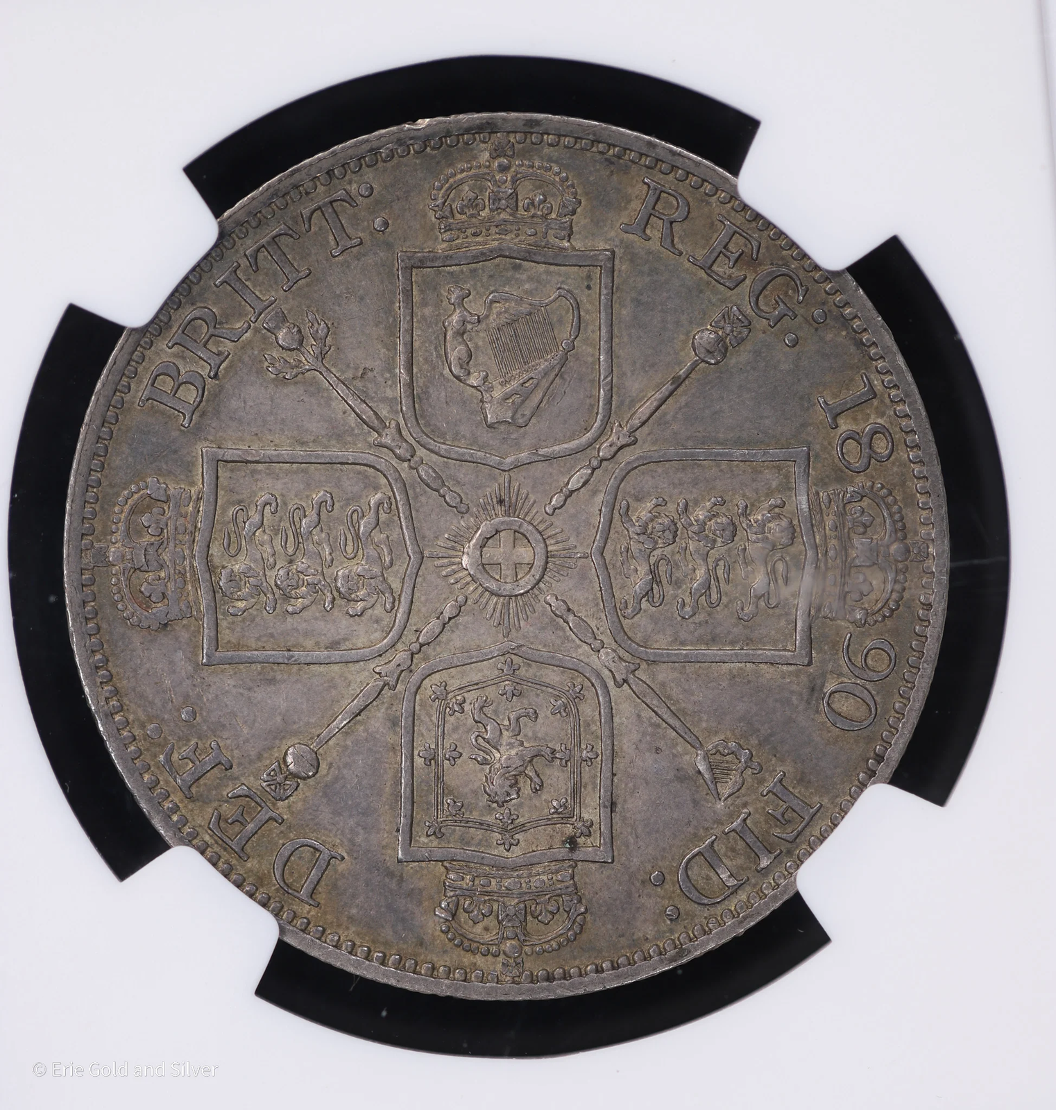 1890 4S Great Britain 4 Shilling Double Florin Silver England Victoria NGC AU 55
