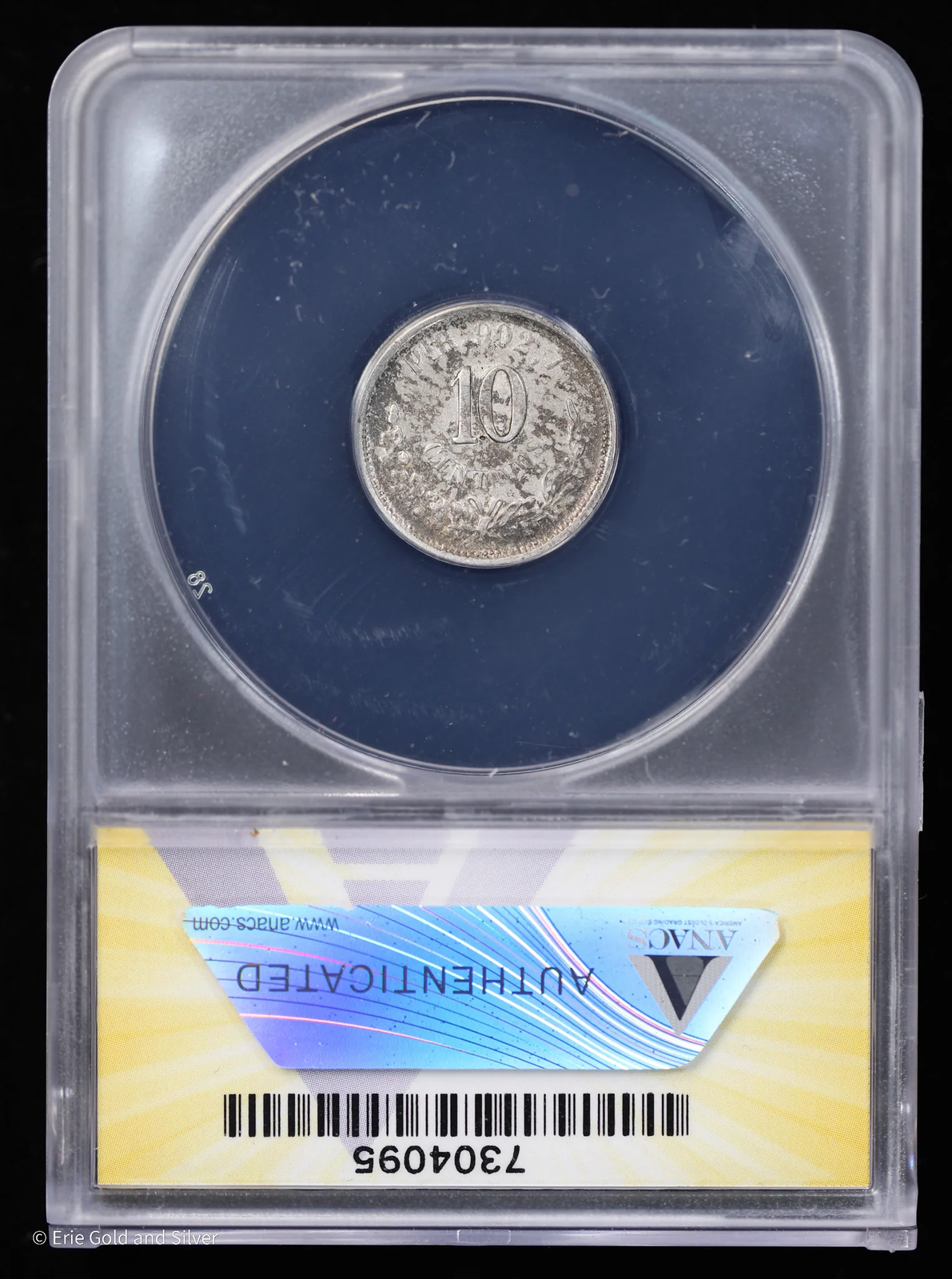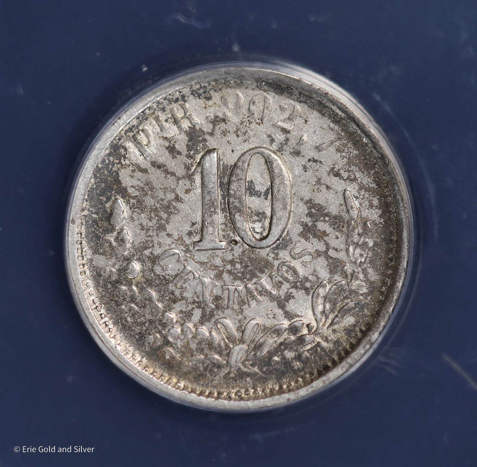 1890-Pi, R 10C Mexico Silver 10 Centavos ANACS EF 45