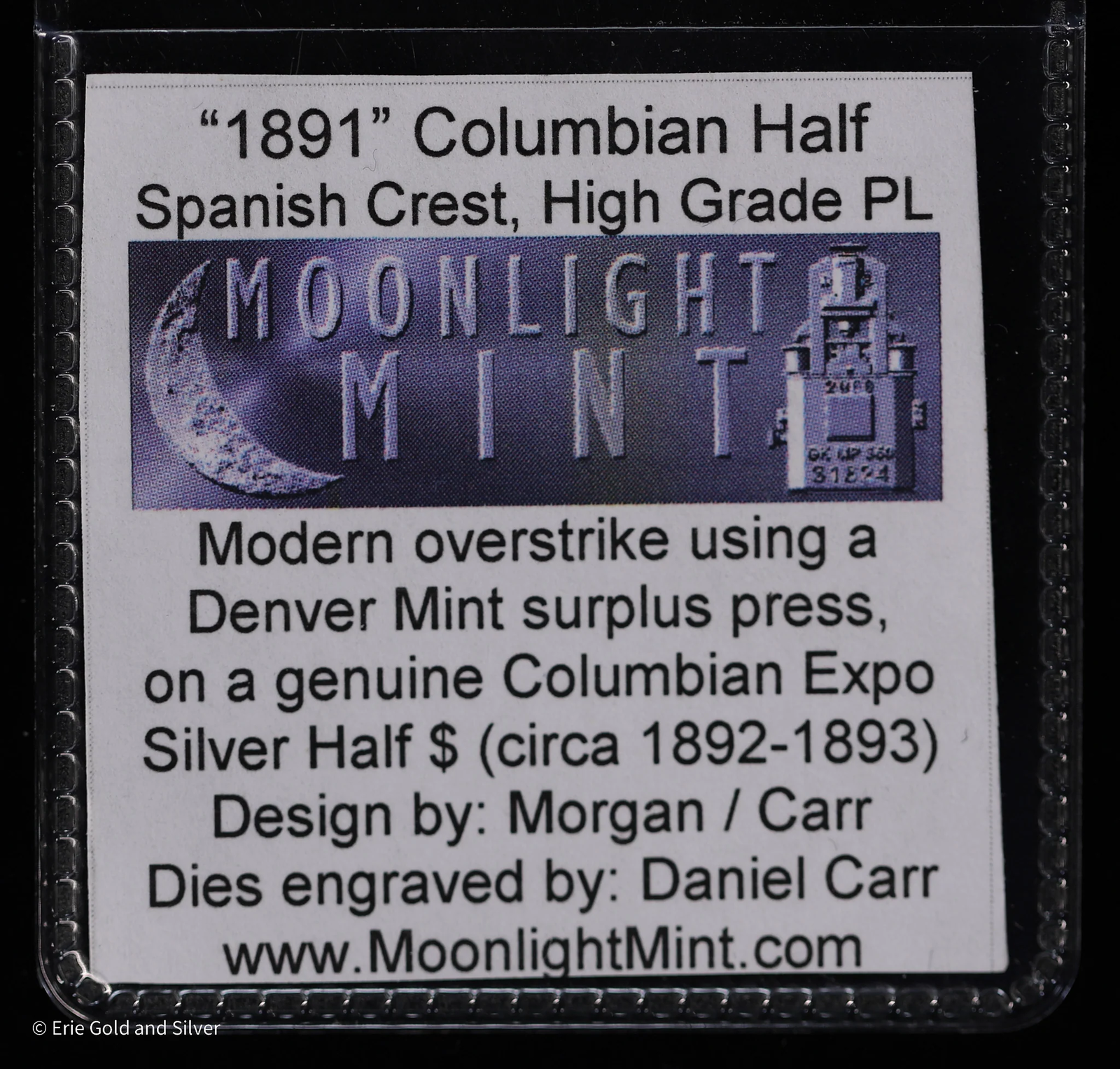 1891 Dan Carr Columbian Half Dollar Token ANACS MS 70 | O/S on USA | Spanish Cre