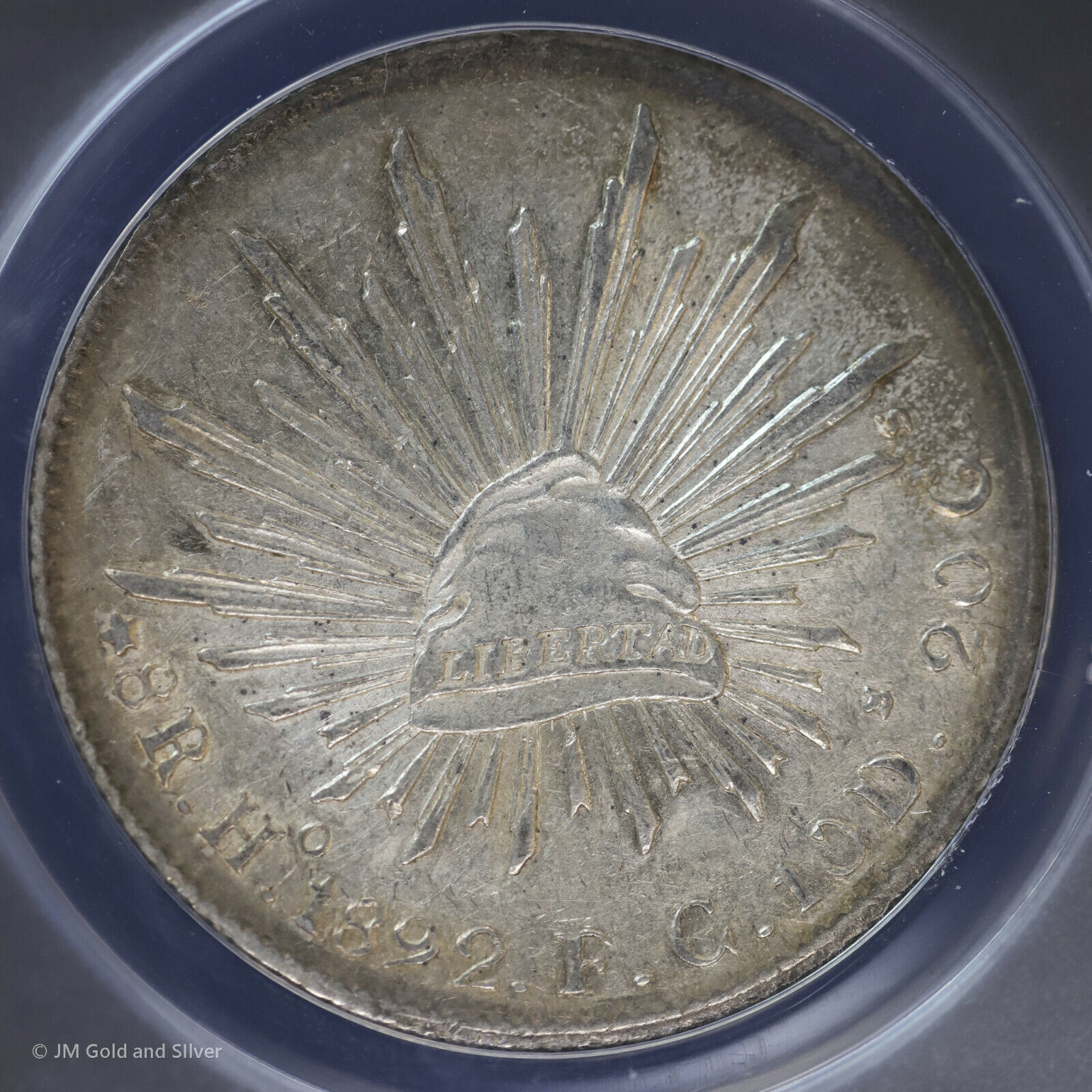 1892 Ho,FG 8R Mexico 8 Reales ANACS AU 58 | Cap / Rays Silver Mintage: 643,000