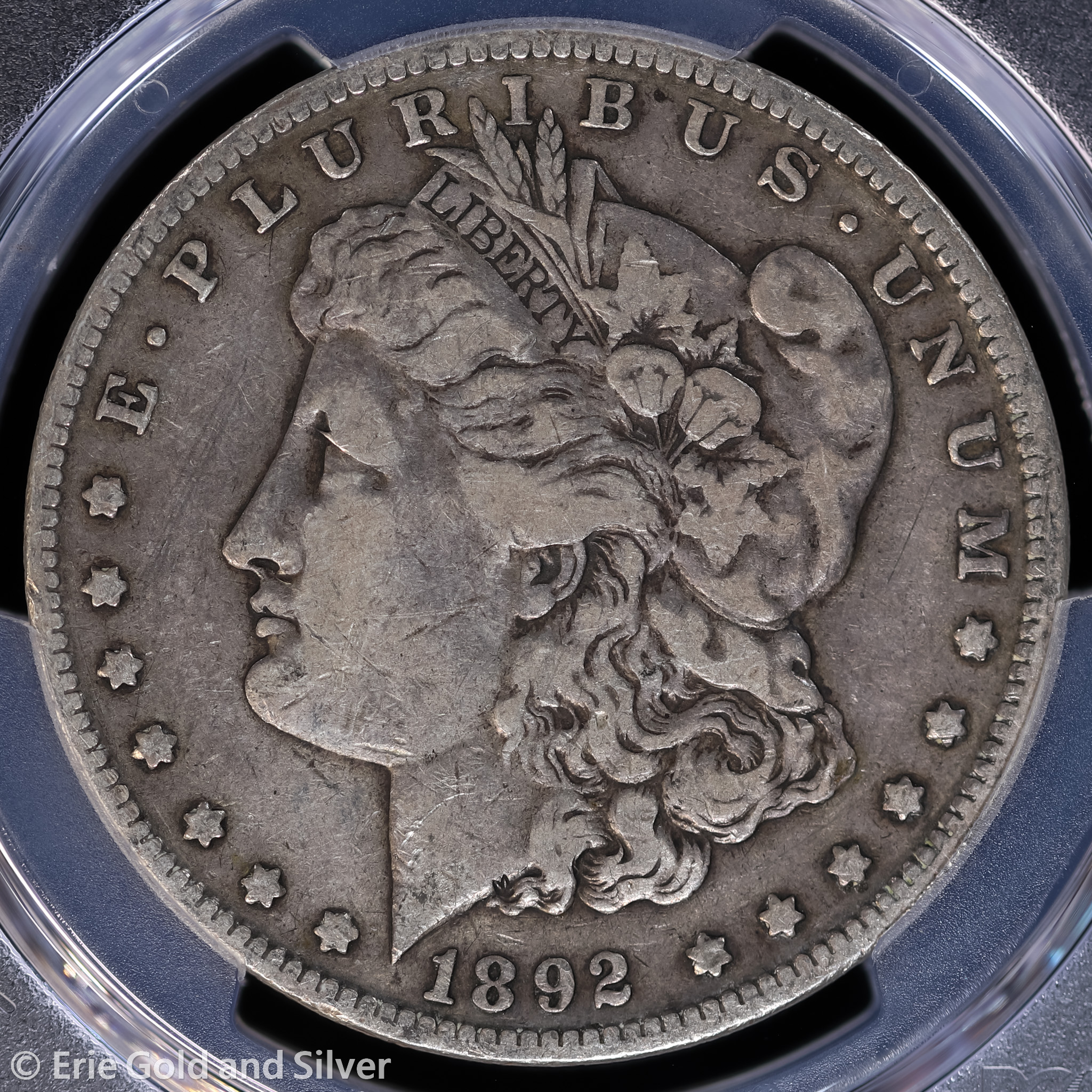 For sale is a 1892-P Morgan Silver Dollar. Certified / graded by PCGS at F 15.