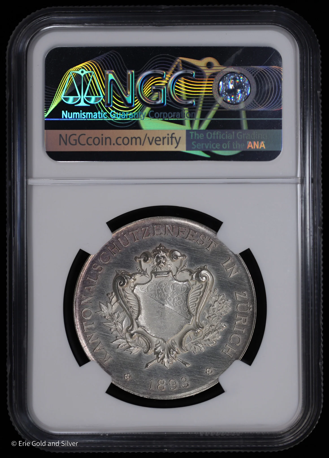 1893 Swiss Shooting Festival Silver Medal Canton Zurich NGC UNC Details