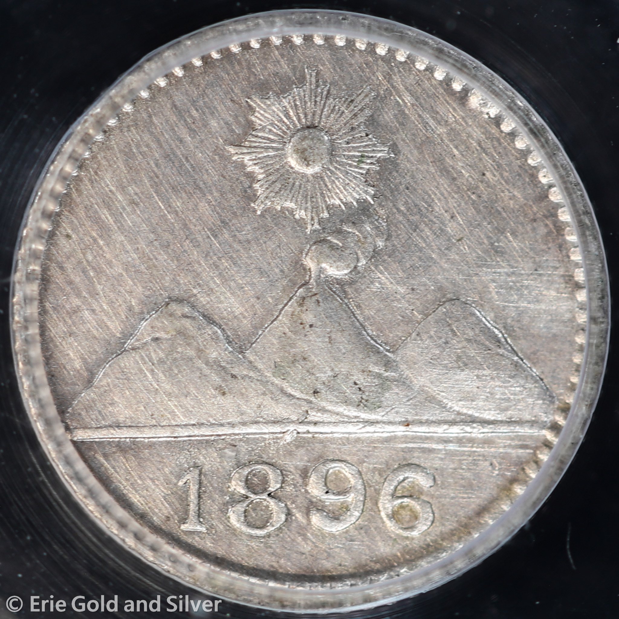For sale is a 1896 Guatemala Silver 1/4 Real. Certified / graded by PCGS at Genuine AU Detail.