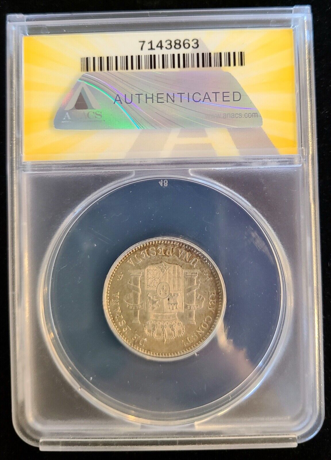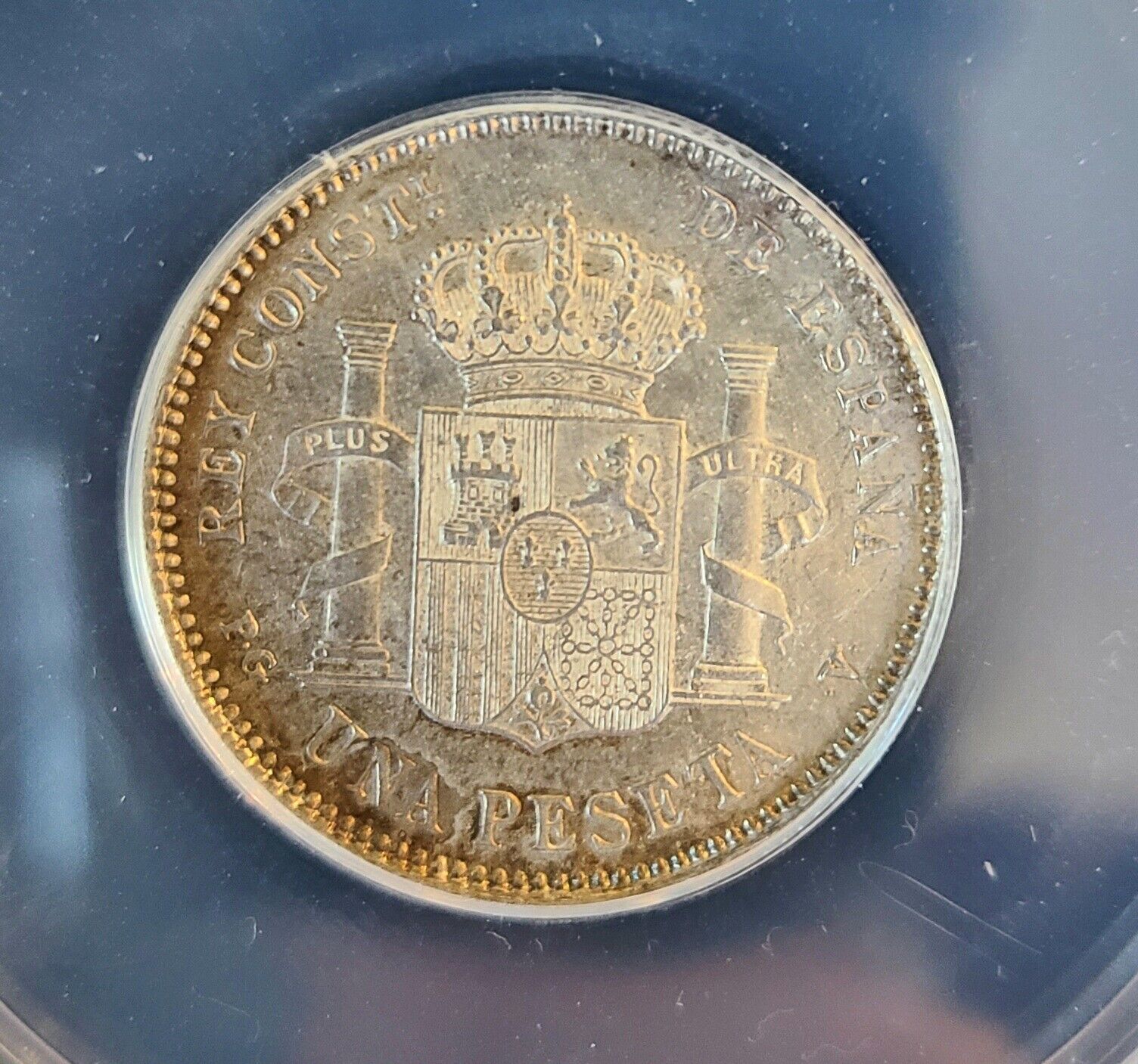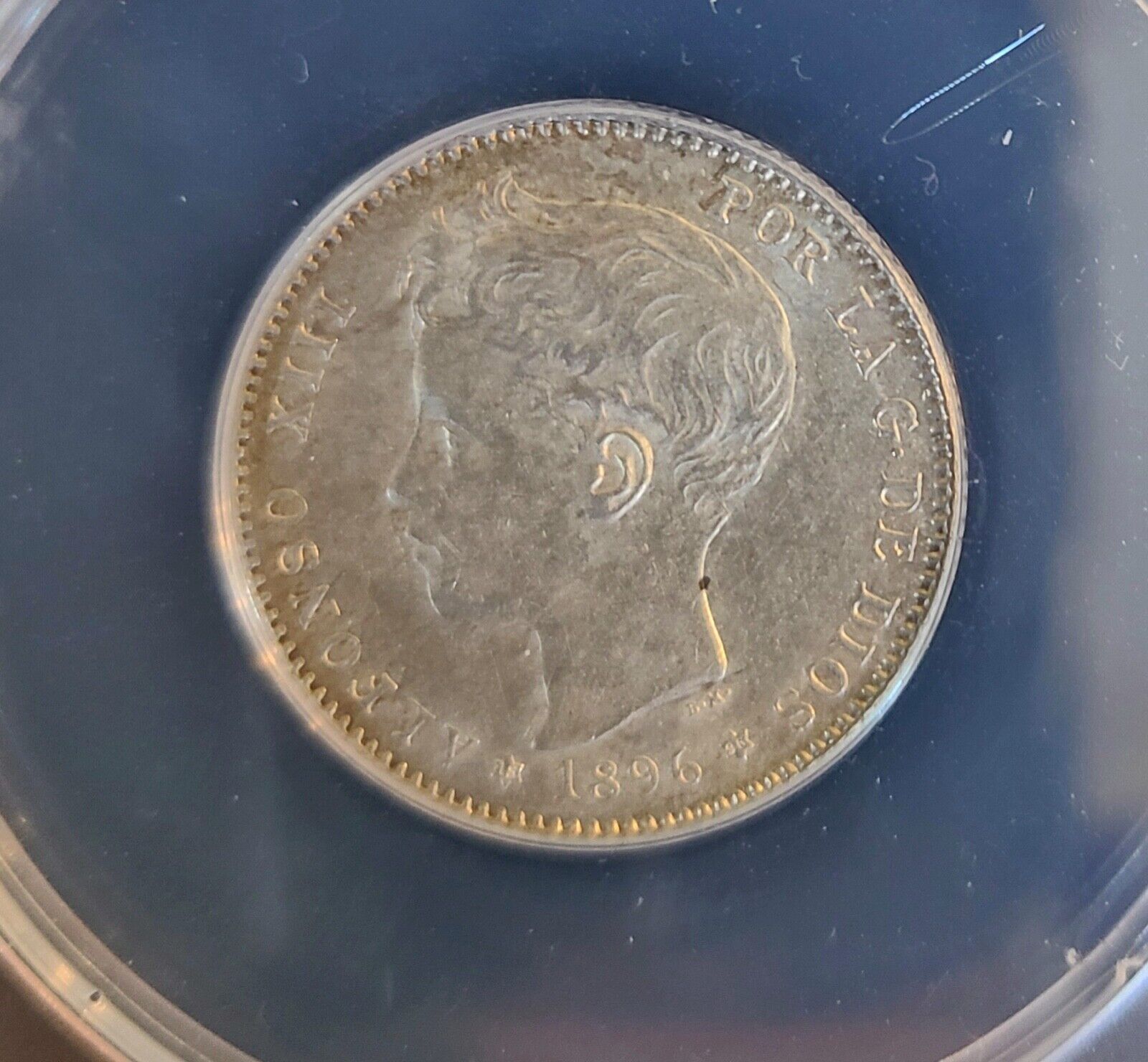 1896-PG,V Spain Alfonso XIII Silver Peseta ANACS AU 58 KM#706
