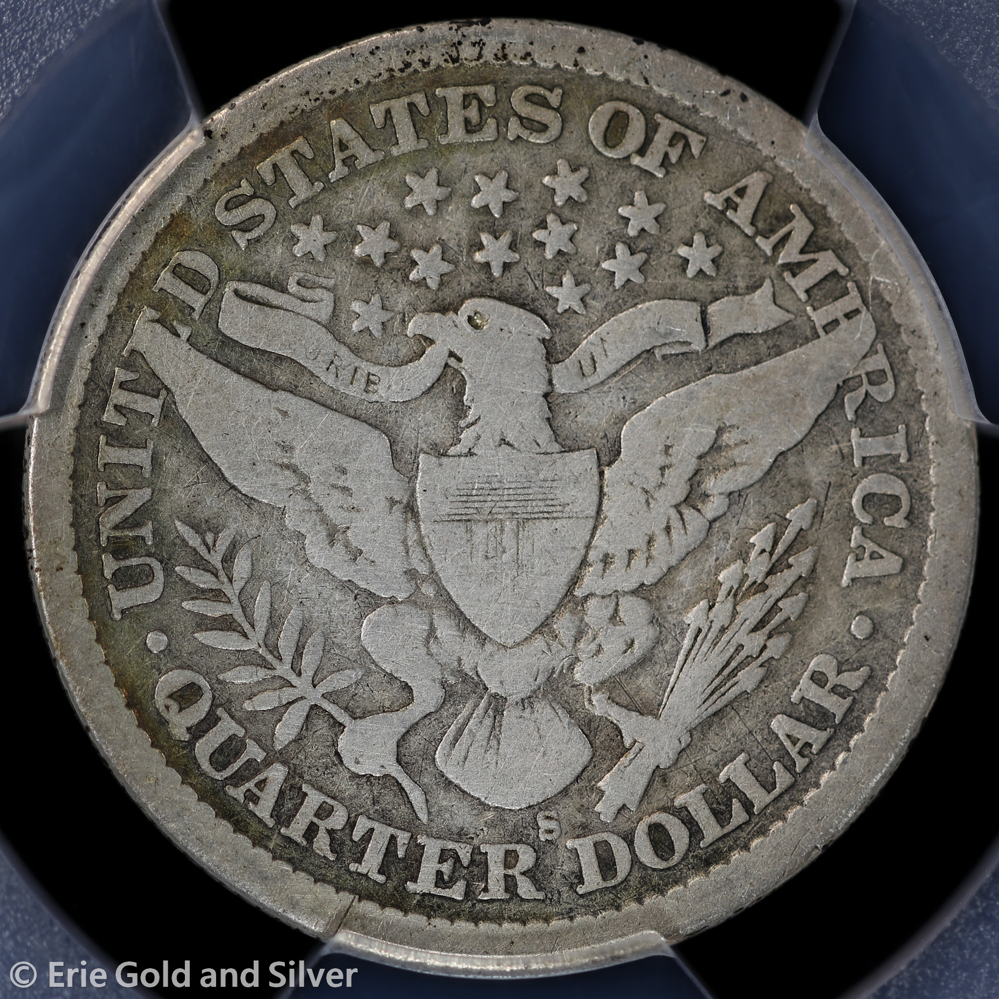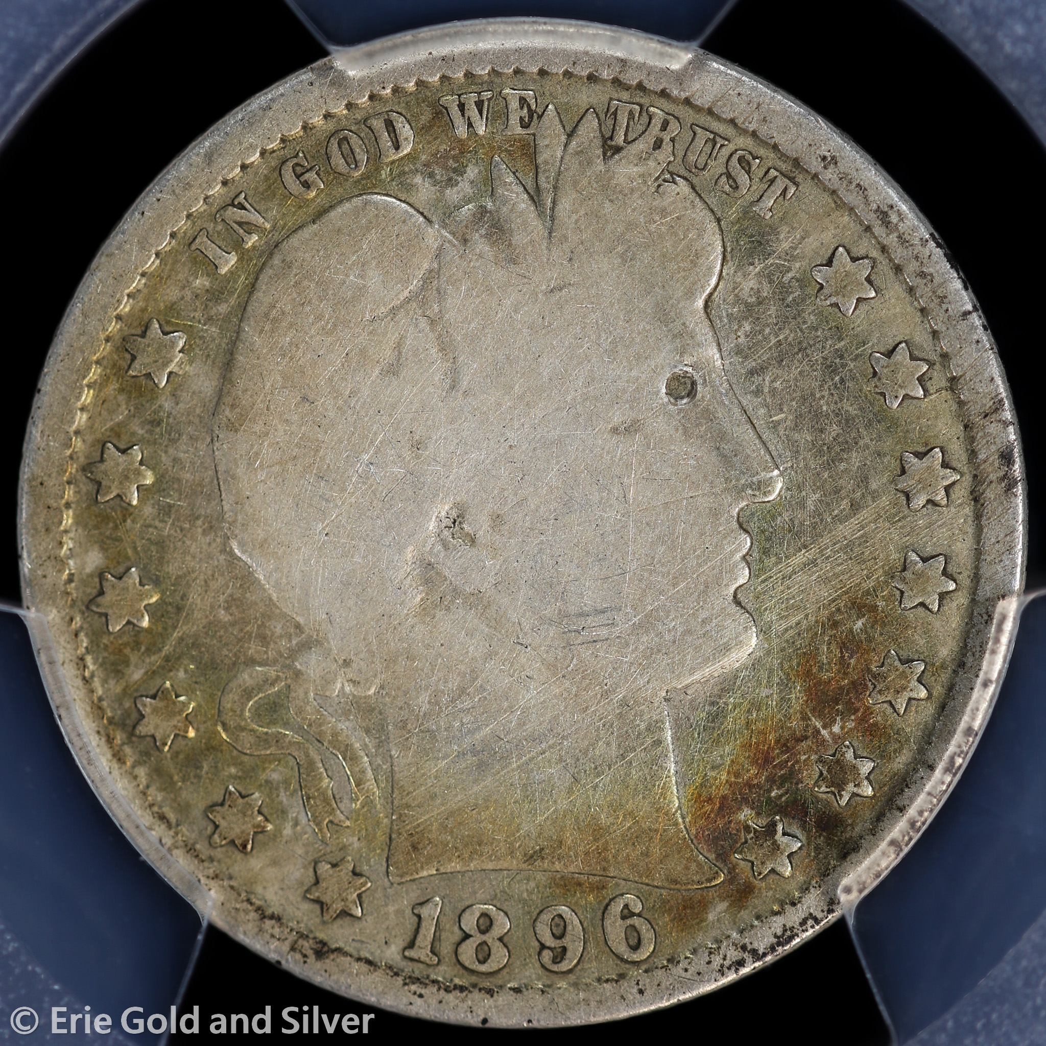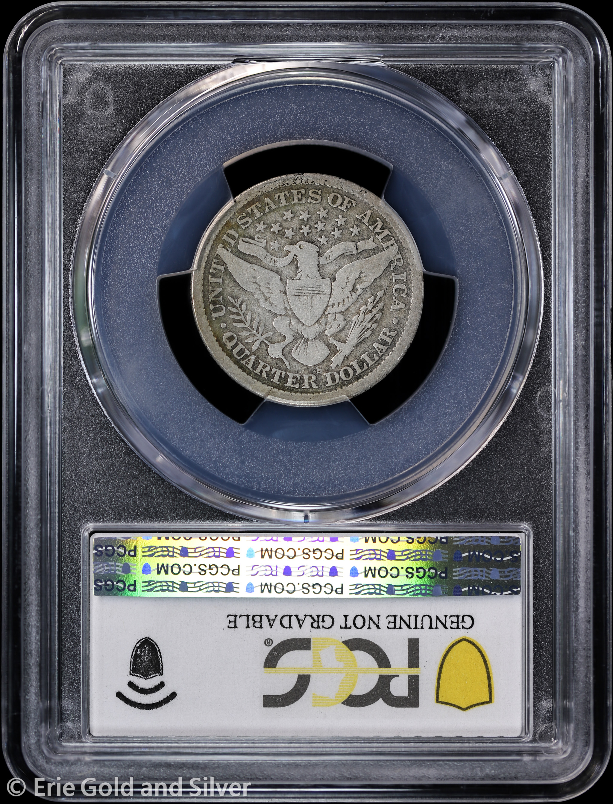 For sale is a 1896-S Barber Quarter. Certified / graded by PCGS at Genuine G Detail.