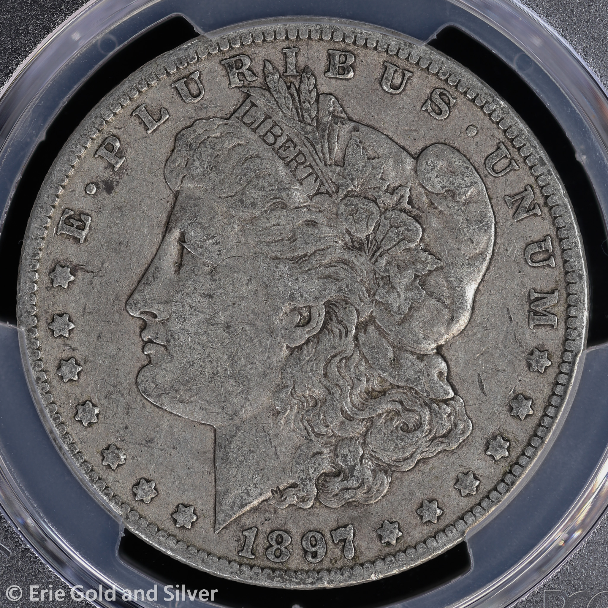 For sale is a 1897-O Morgan Silver Dollar. Certified / graded by PCGS at VF 25.
