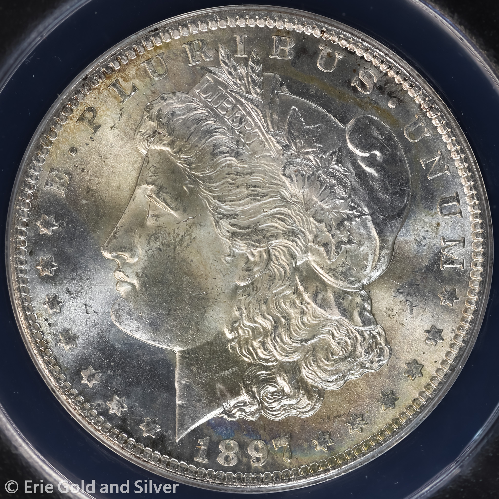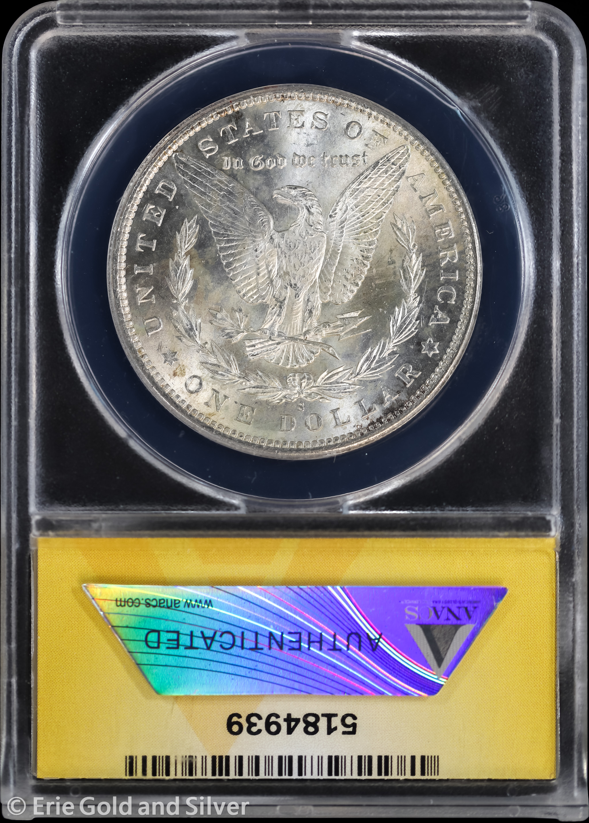 For sale is a 1897-S Morgan Silver Dollar. Certified / graded by ANACS at MS 64.