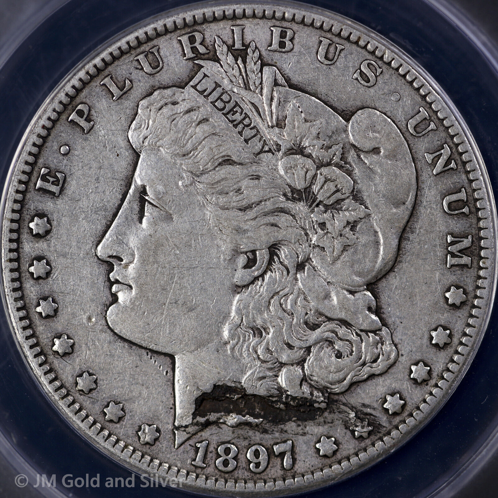1897-S Morgan Silver Dollar ANACS AU 50 Details | Lamination Impure Metal Streak