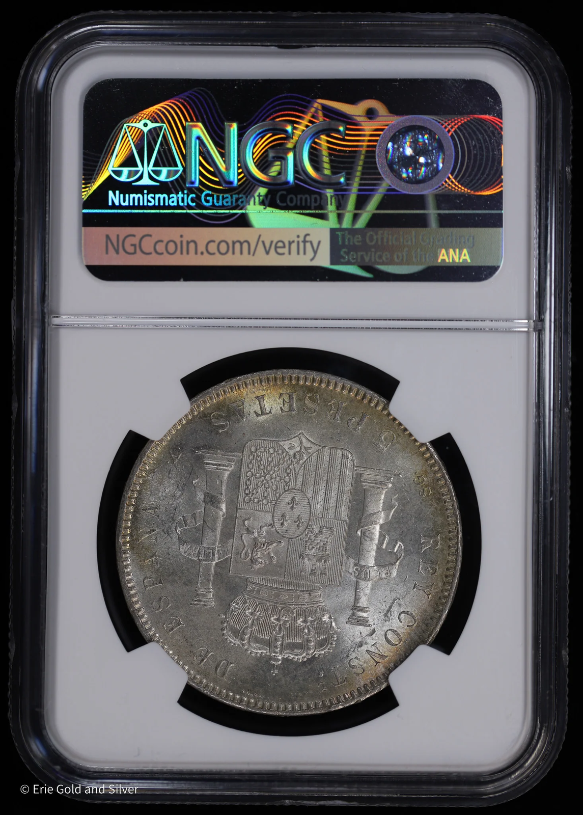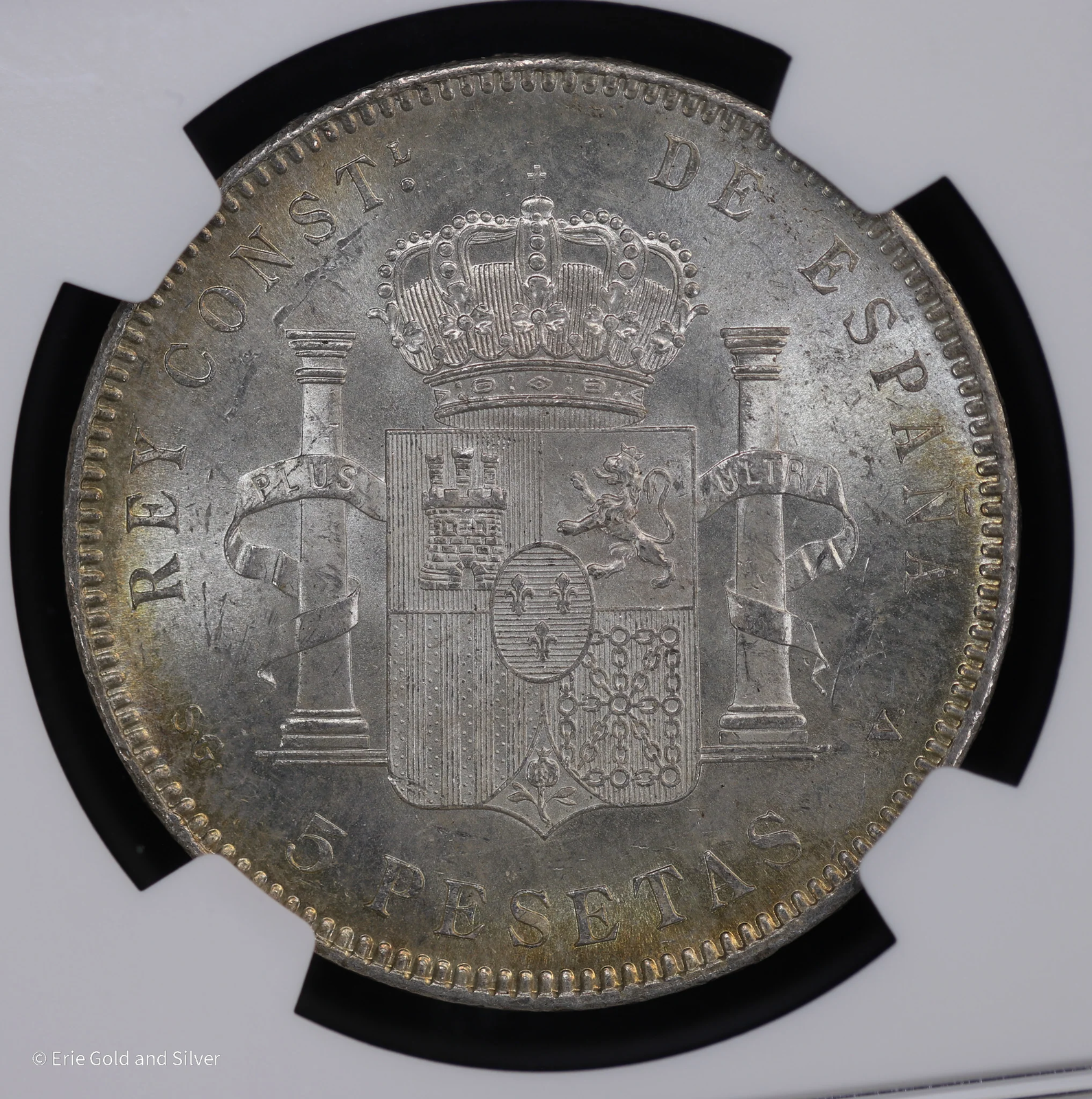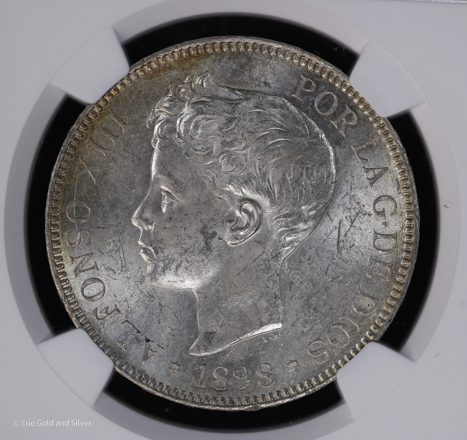 1898(98) 5P SGV Spain Silver 5 Pesetas NGC MS 62