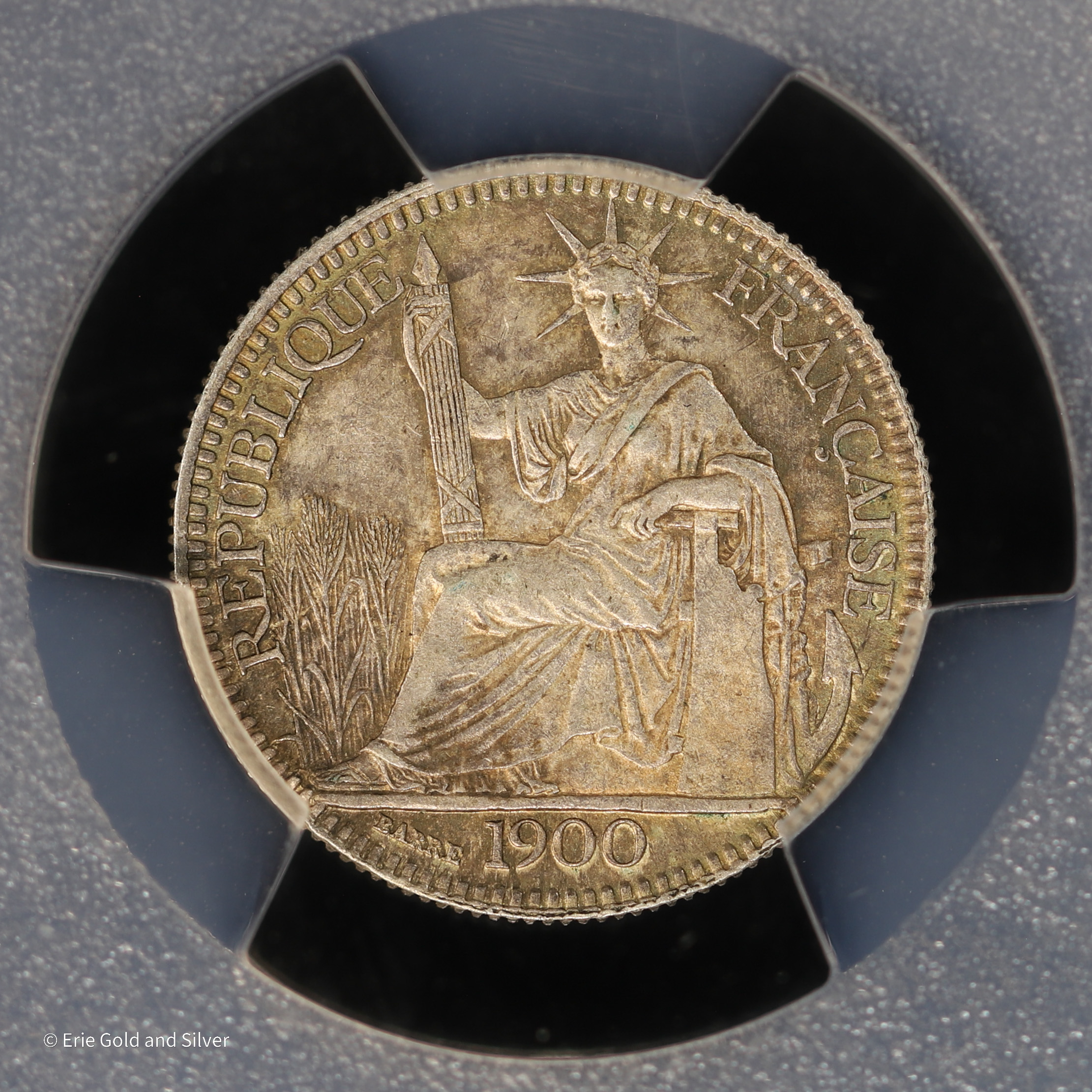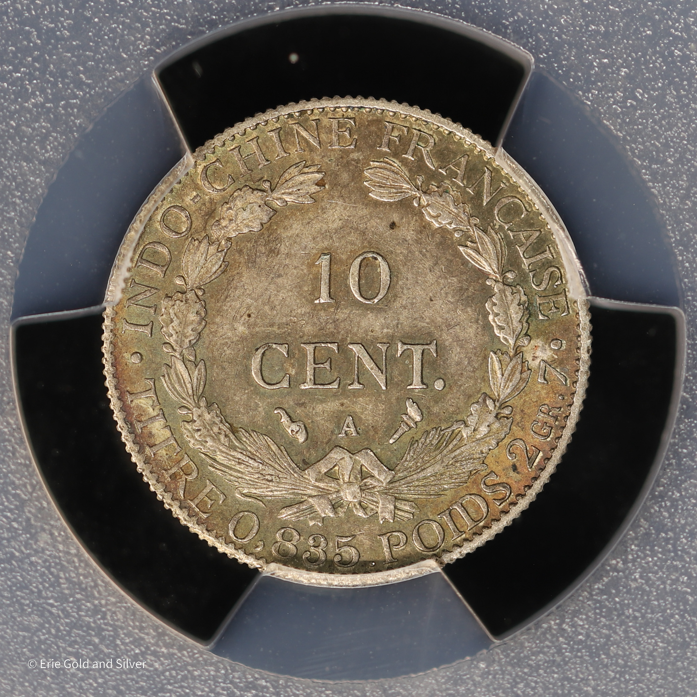 For sale is a 1900-A French Indo China Silver 10 Cents. Certified / graded by PCGS at MS 62. Silver content is .0725 oz.