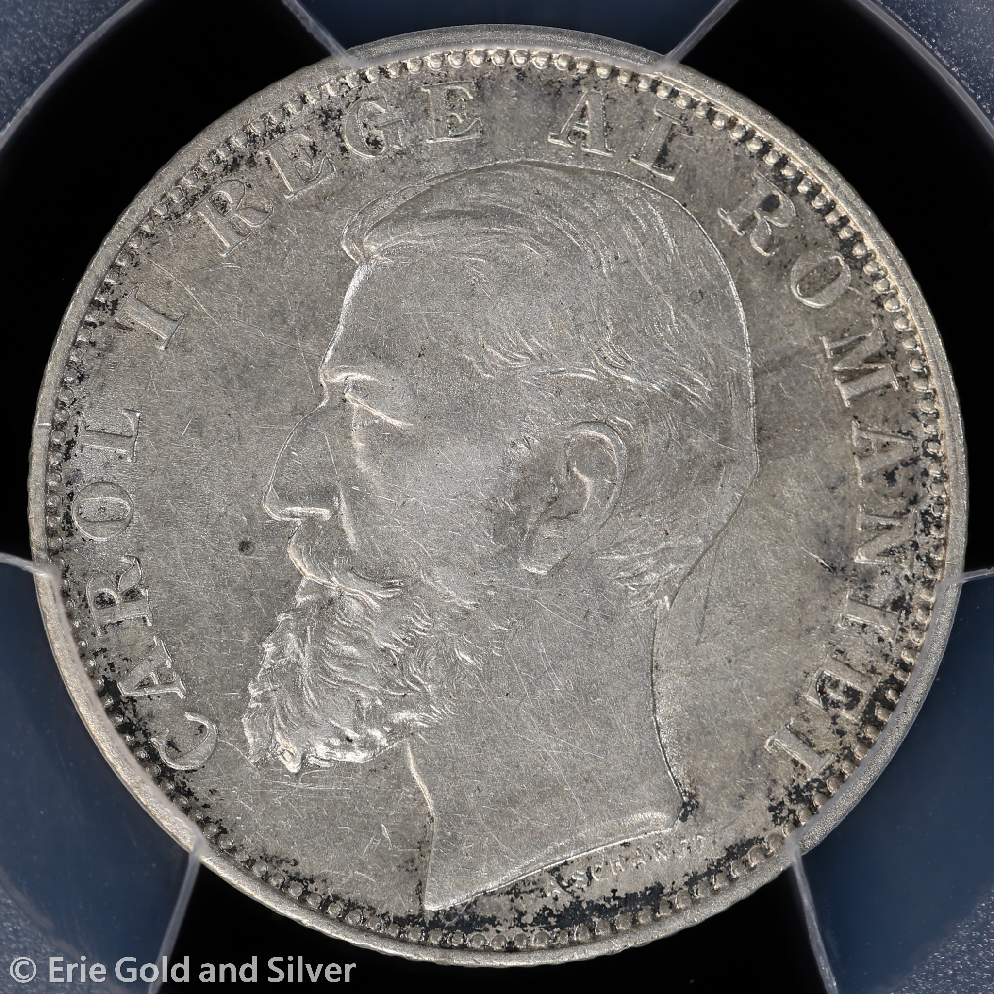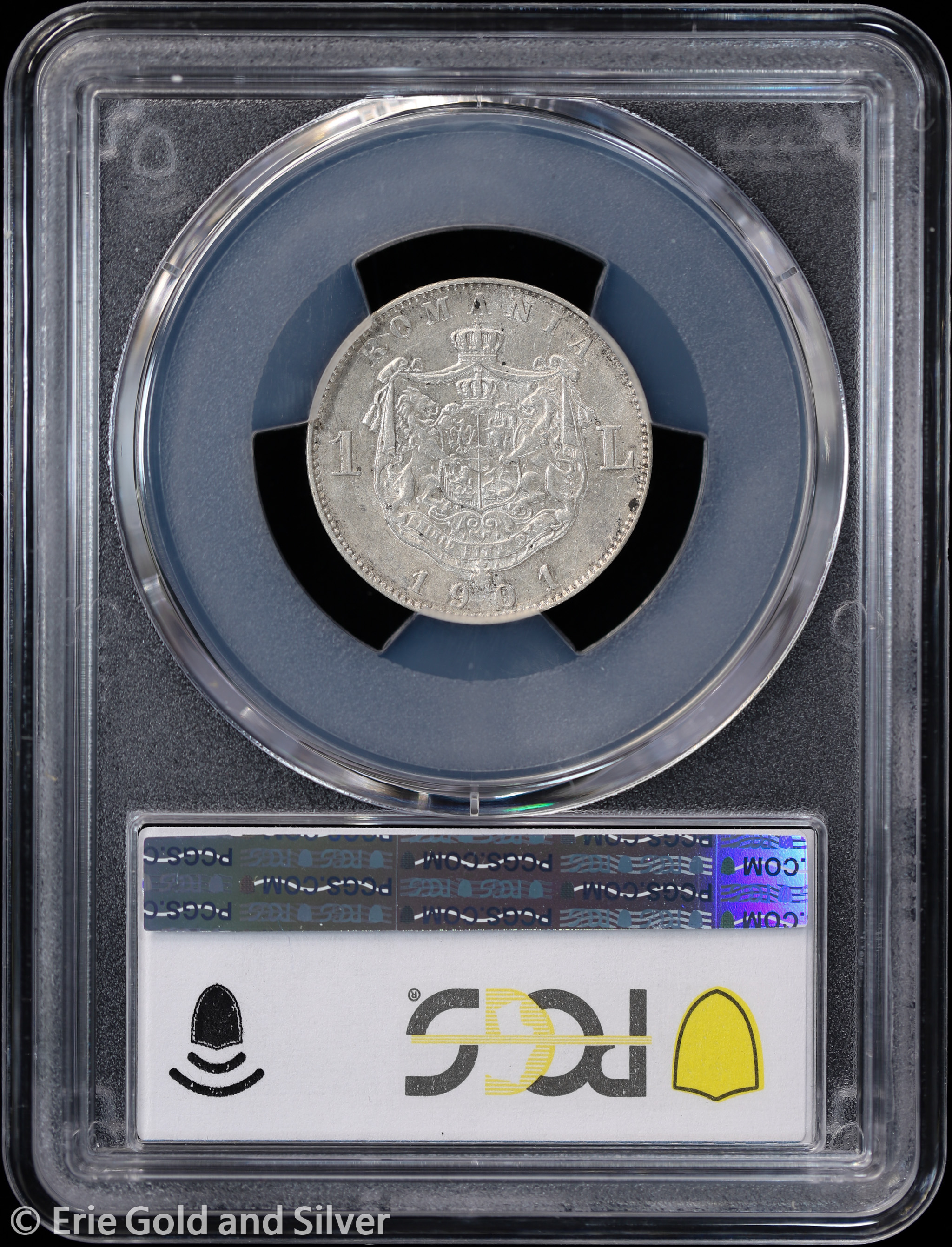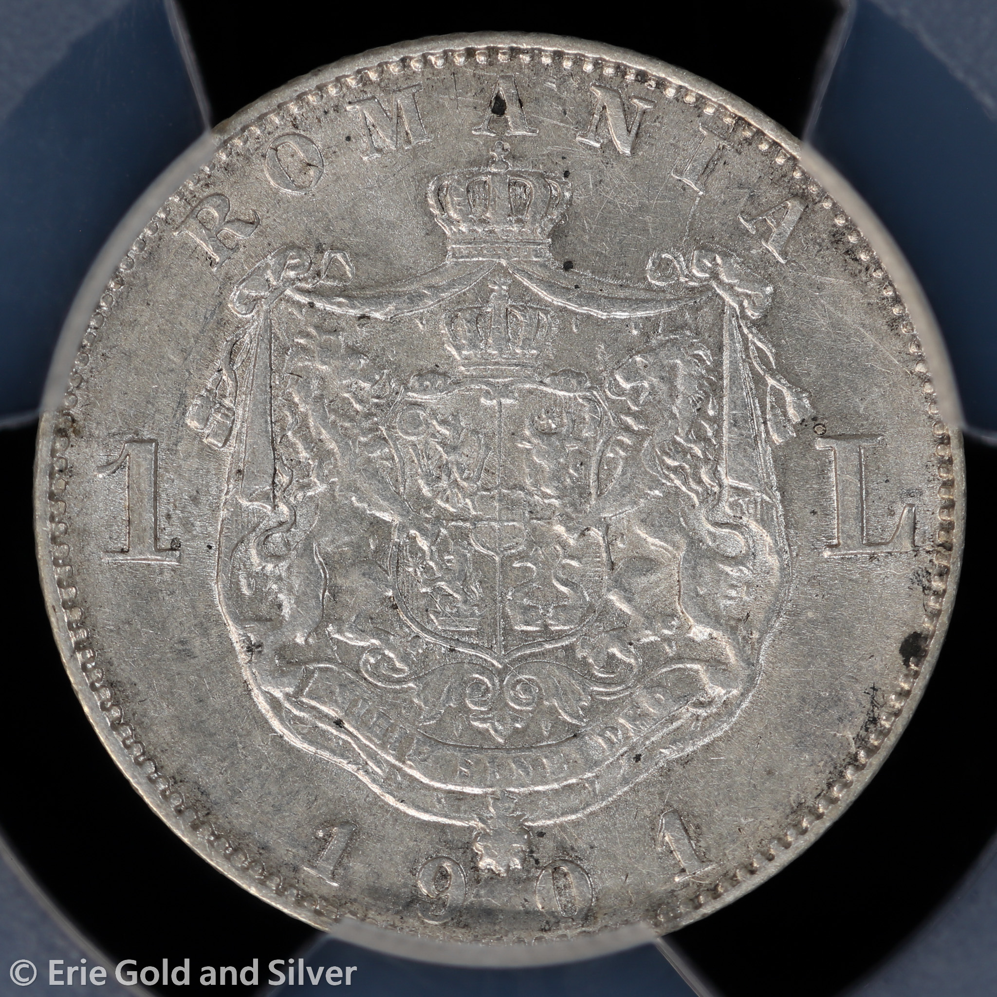 For sale is a 1901 Romania Silver 1 Leu Coin. Certified / graded by PCGS at AU 55.
