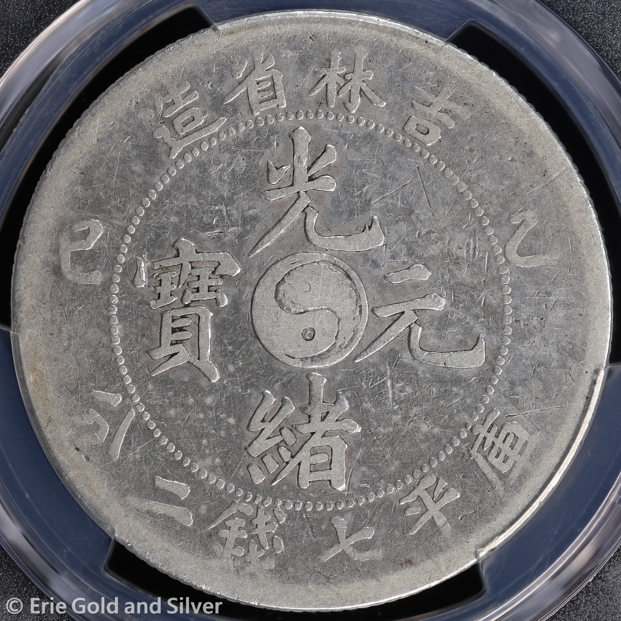 For sale is a (1905)乙巳 China Kirin Silver Coin. Certified / graded by PCGS at Genuine VF Detail.