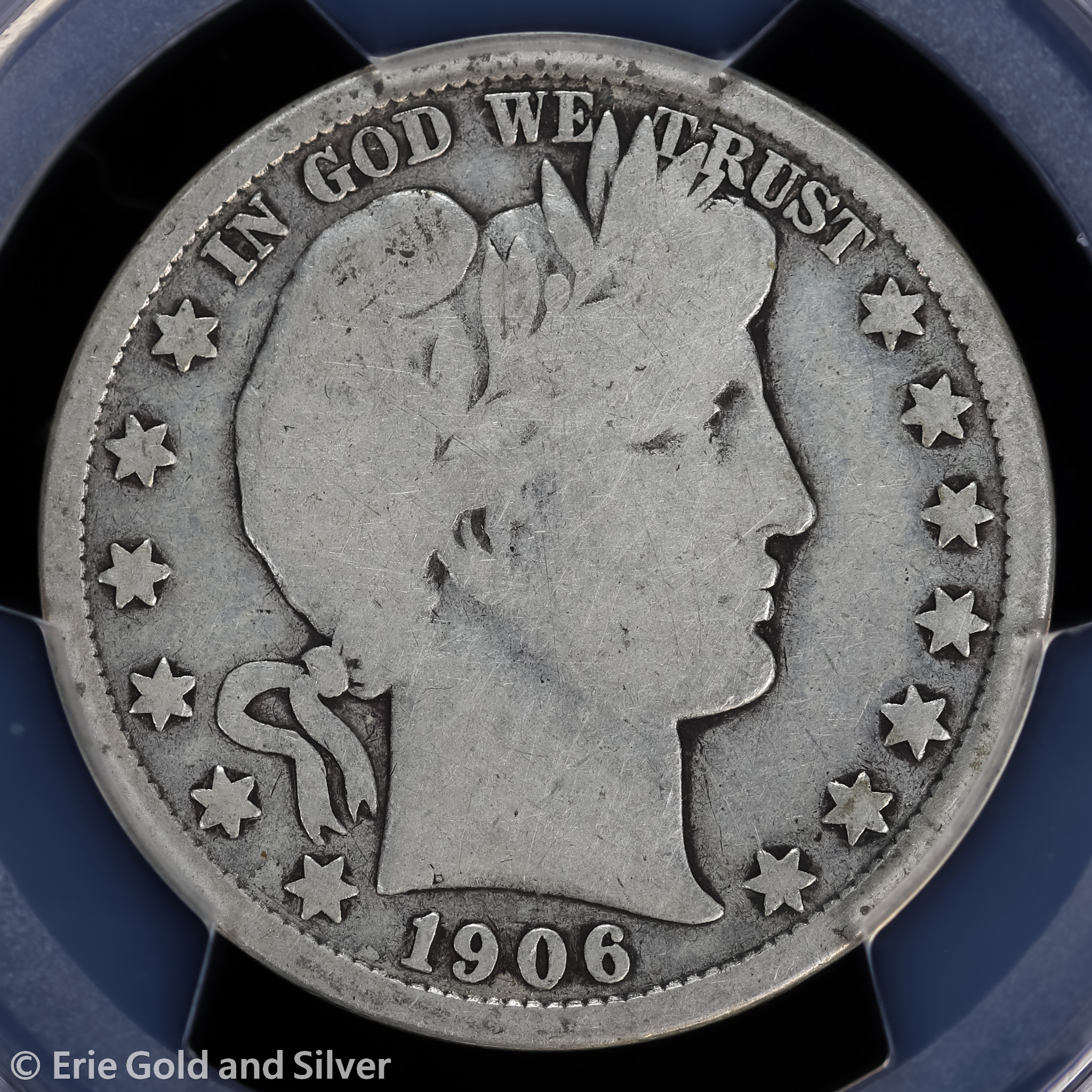For sale is a 1906-D Barber Half Dollar. Certified / graded by PCGS at G 06.