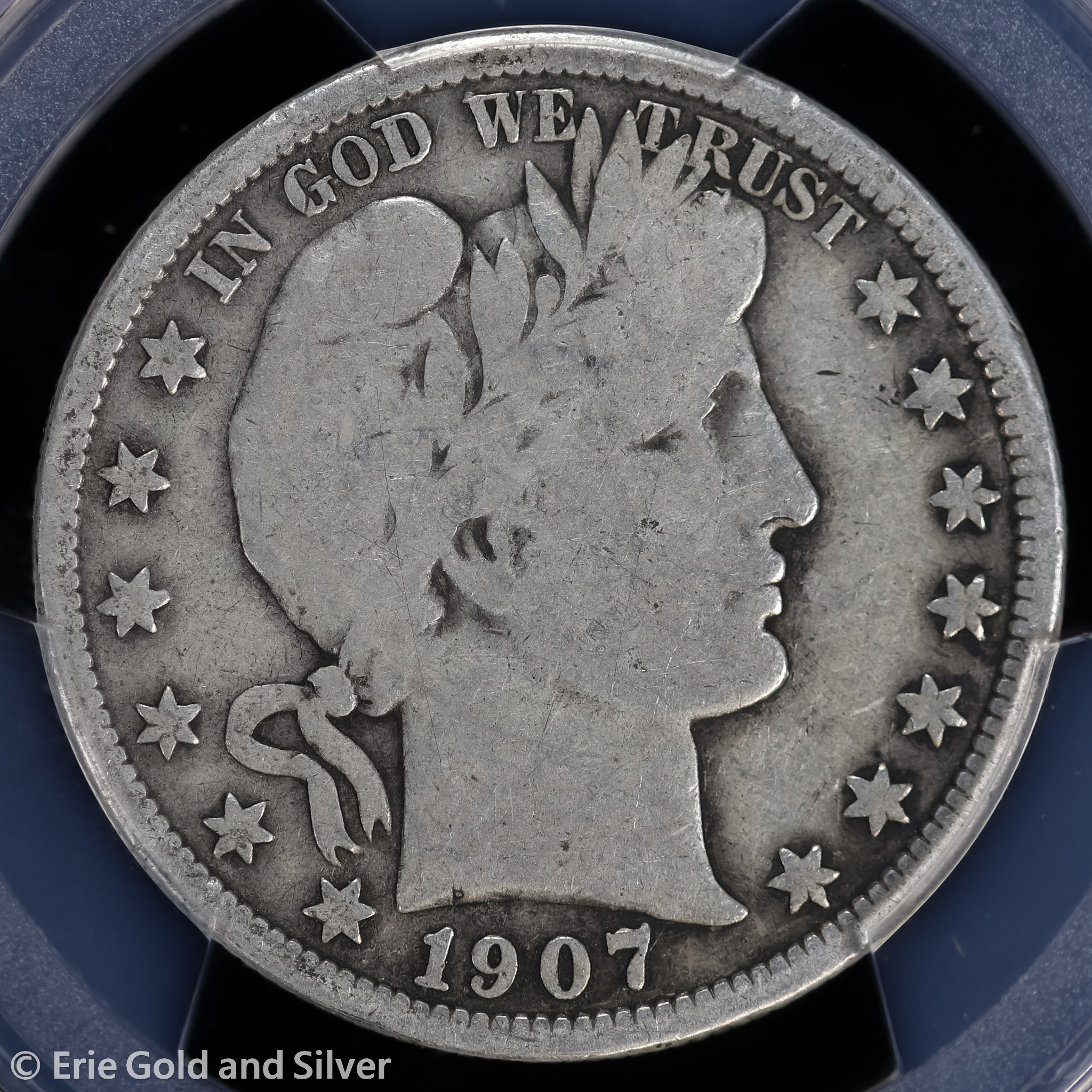 For sale is a 1907 Barber Half Dollar. Certified / graded by PCGS at VG 08.
