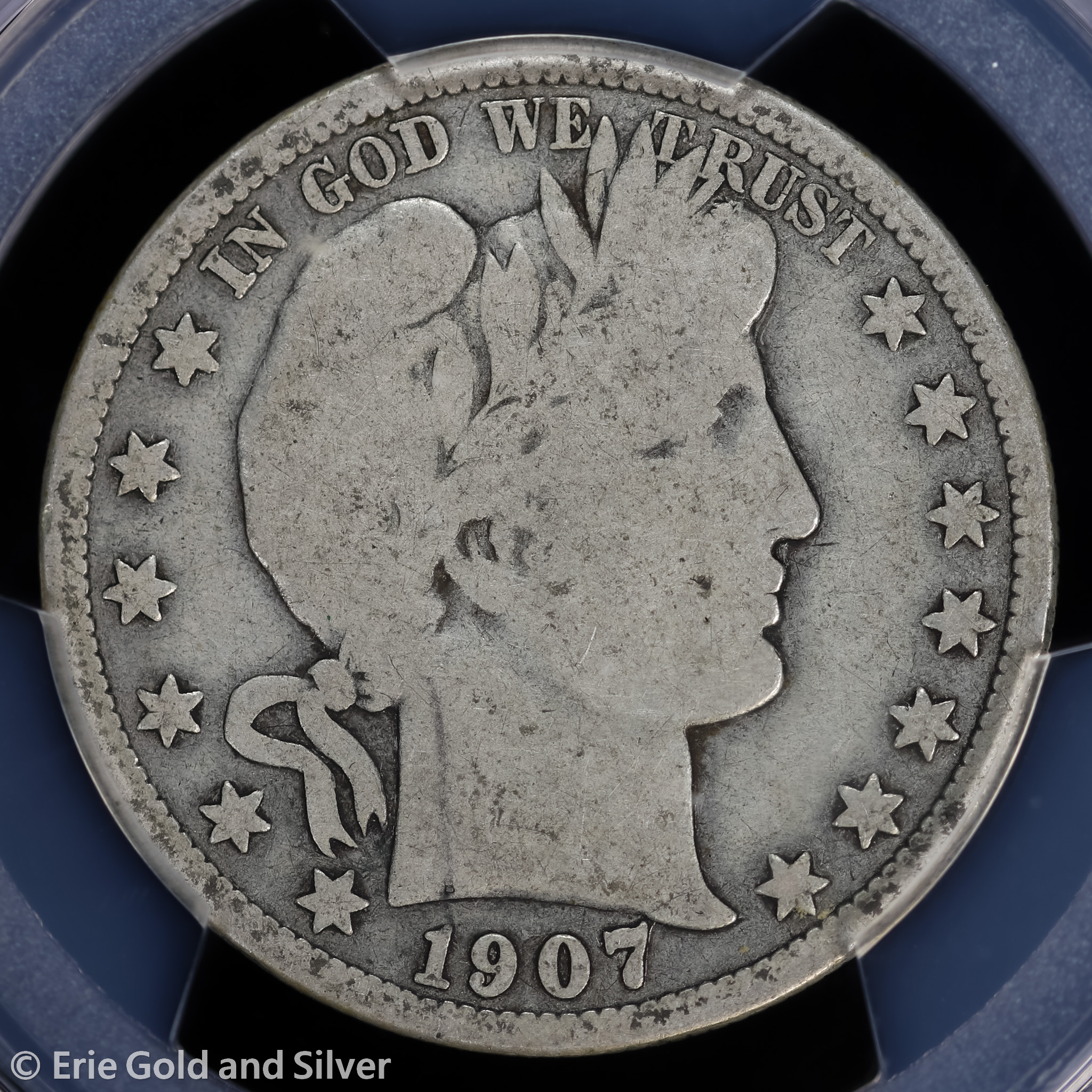 For sale is a 1907-D Barber Half Dollar. Certified / graded by PCGS at G 06.
