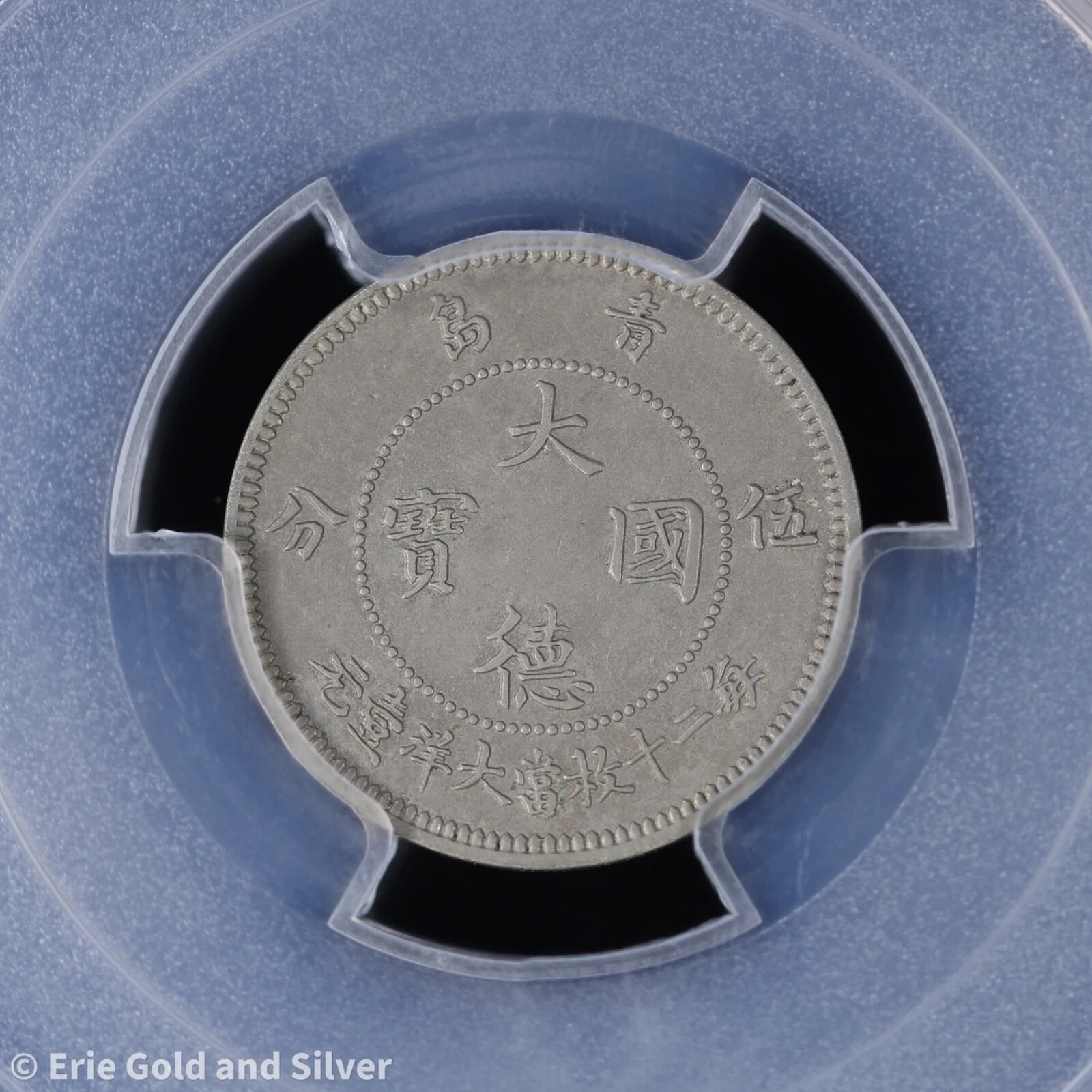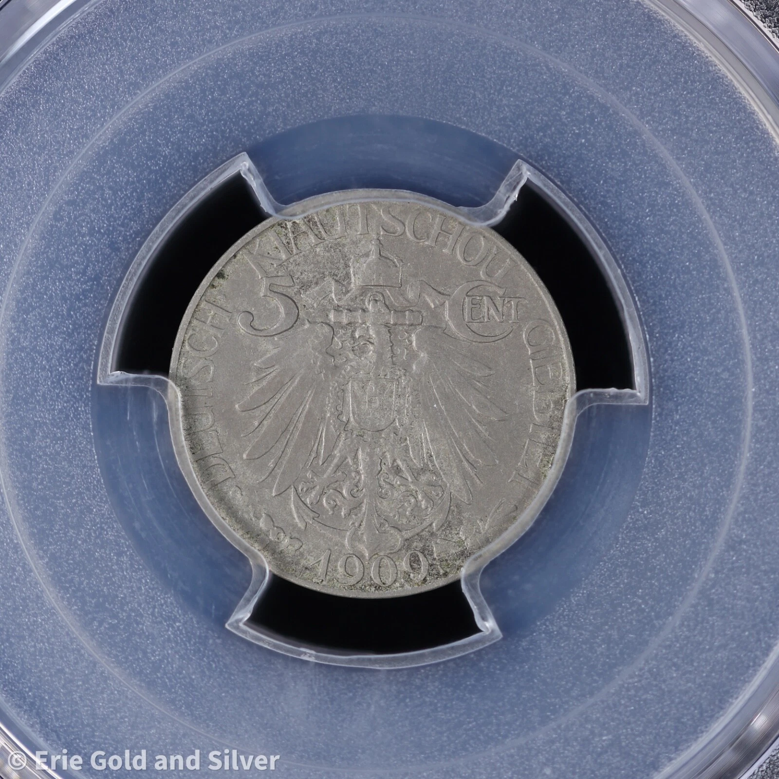 For sale is a 1909 Kiau Chau 5 Cents coin. Certified/Graded by PCGS at AU 58.