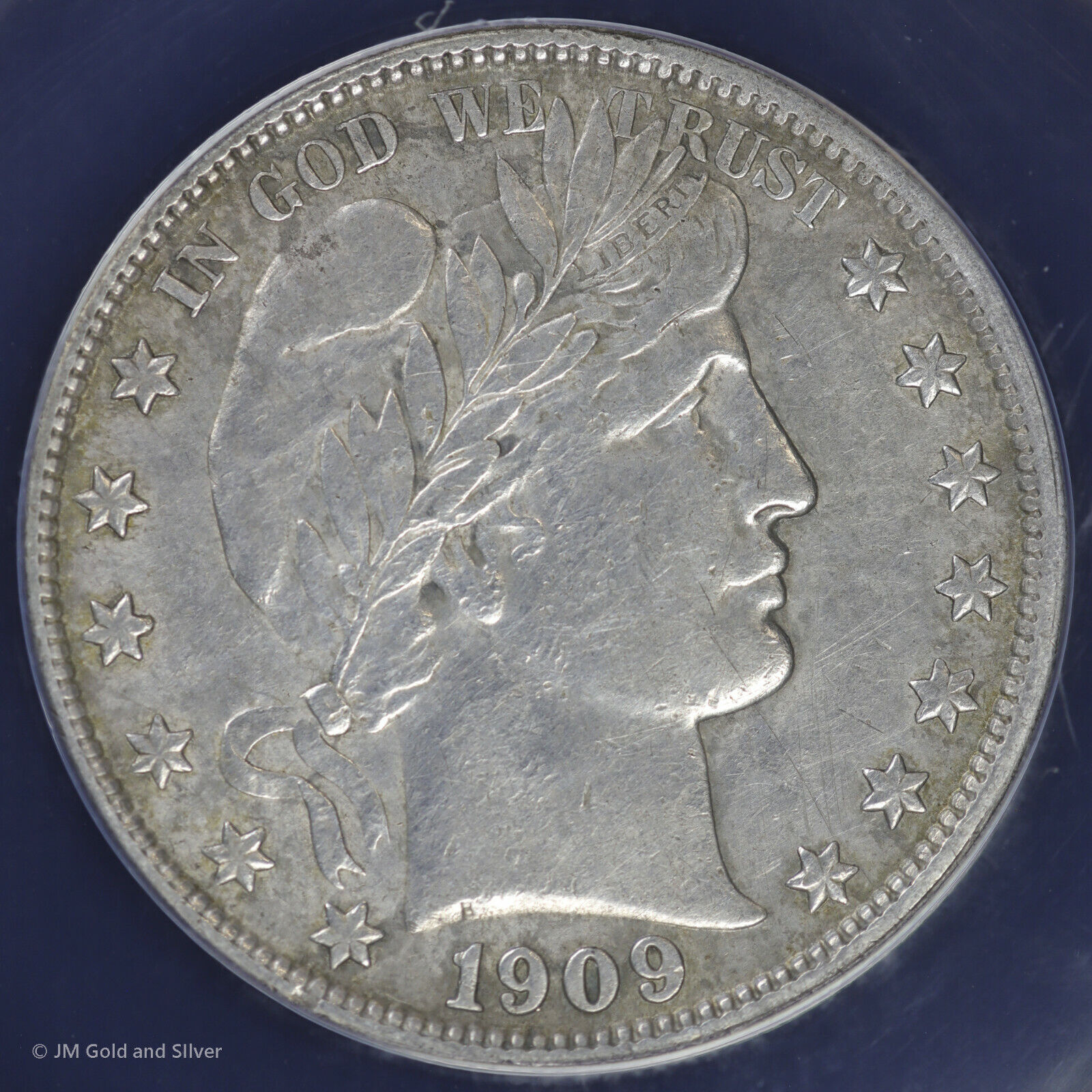 1909 S 50c Barber Half Dollar ANACS AU 50 Details | About Uncirculated