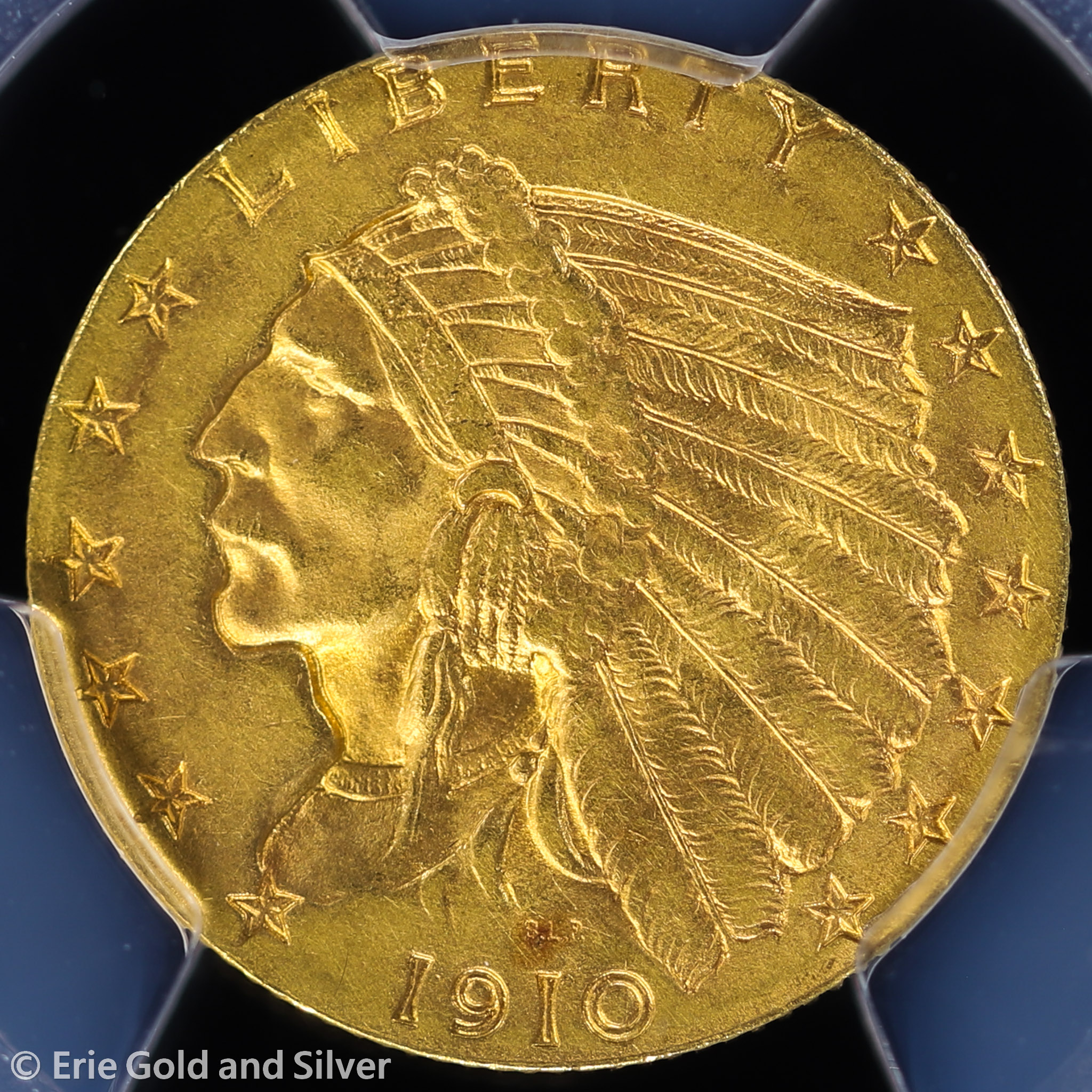 1910 $2.50 Gold Indian Head Quarter Eagle PCGS AU 58