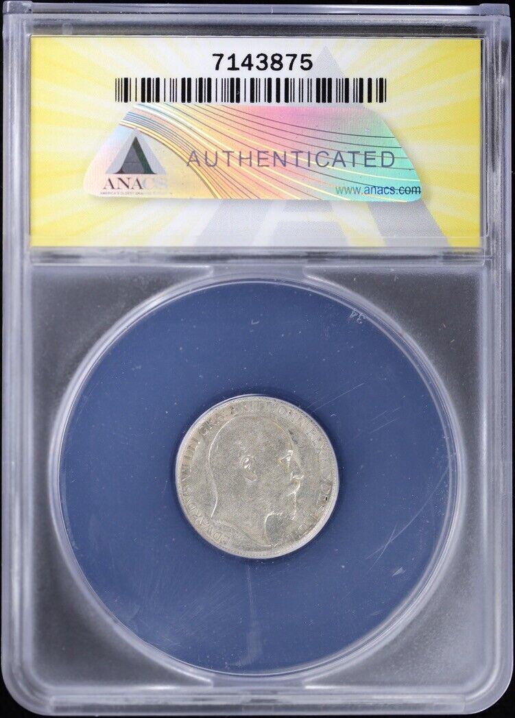 1910 Great Britain Edward VII Silver Sixpence Coin ANACS AU 50
