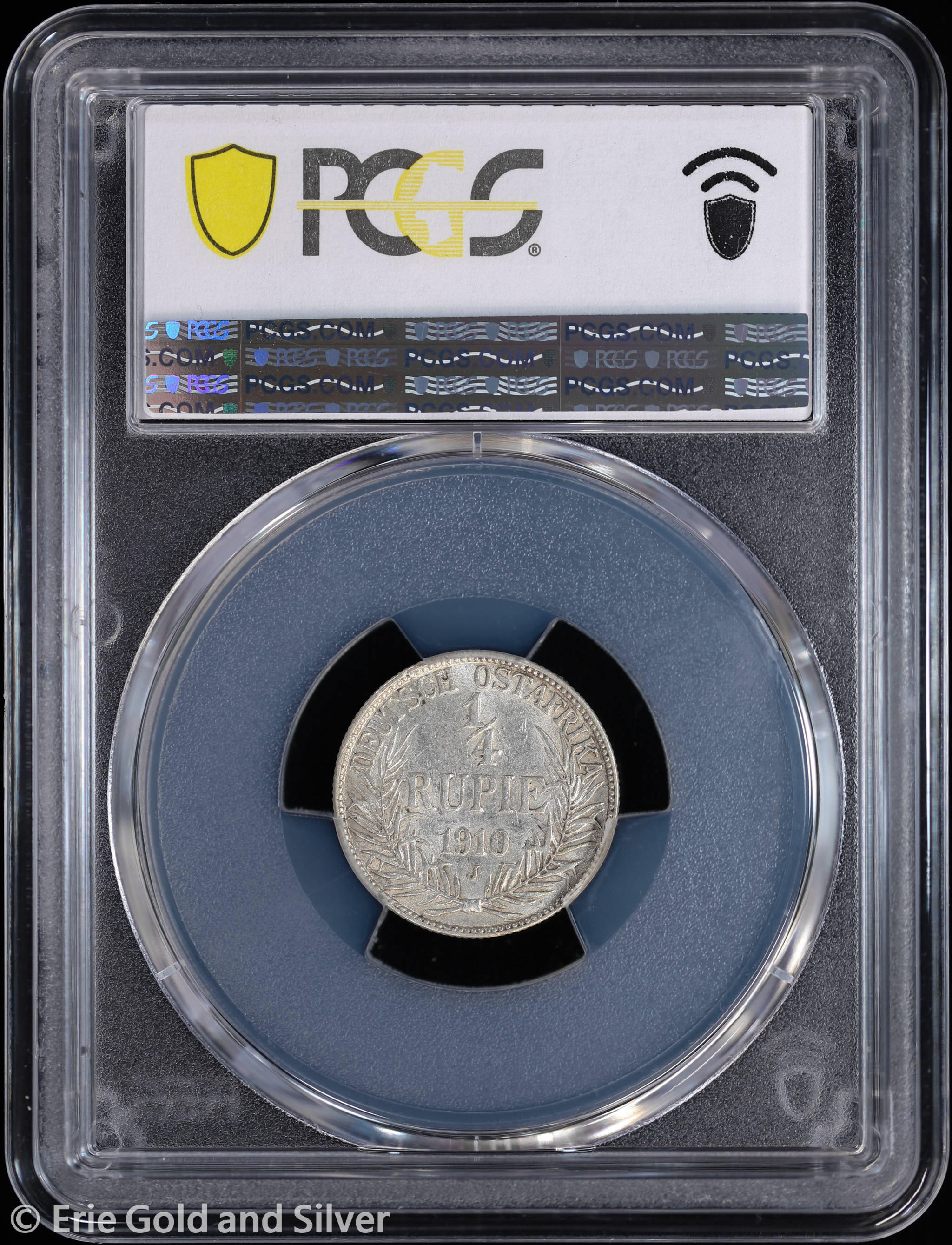 1910-J German East Africa Silver 1/4 Rupie PCGS AU 50 | J-720