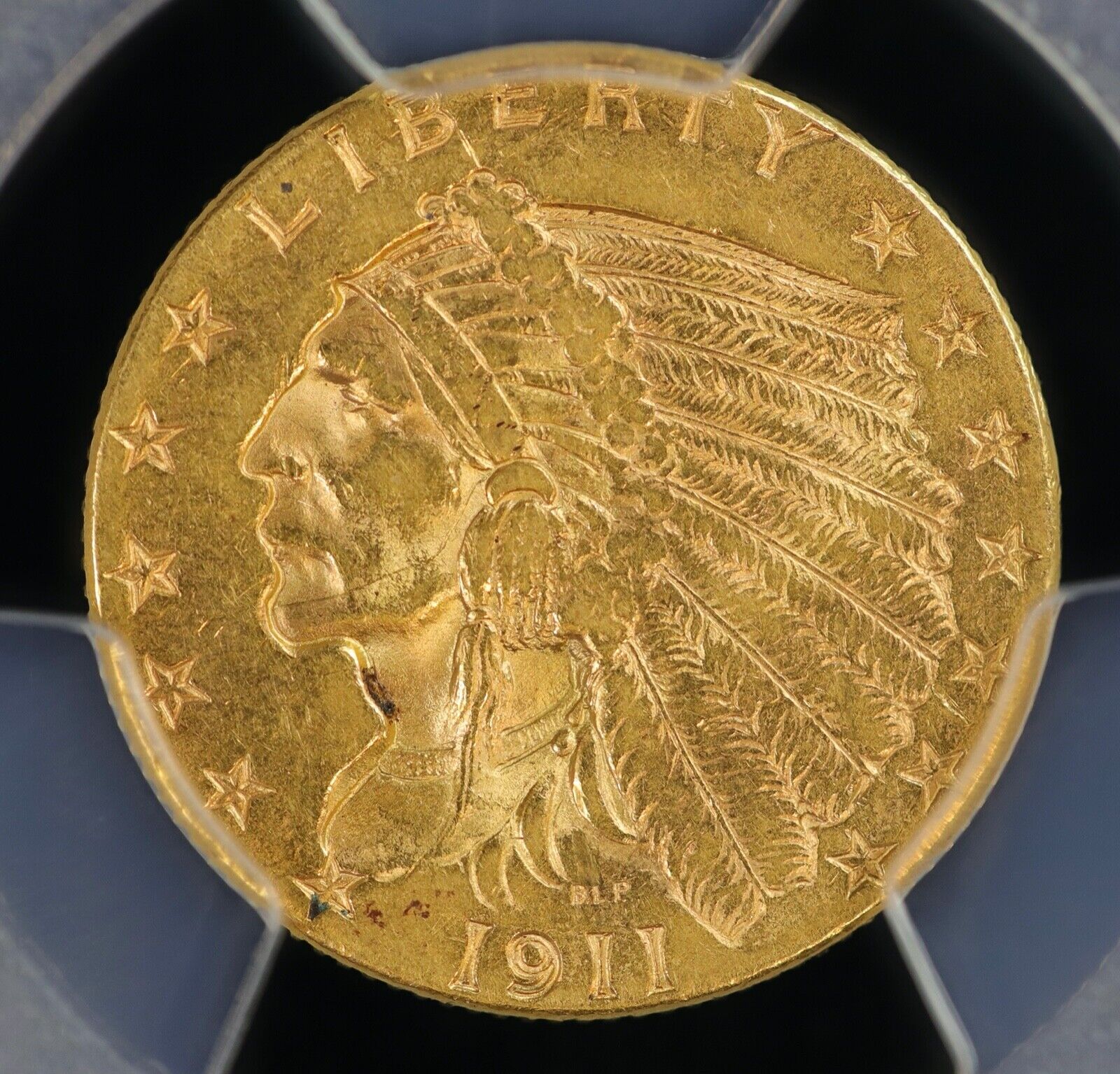 1911 $2.50 Quarter Eagle Gold 2 1/2 Dollar Indian PCGS AU 58