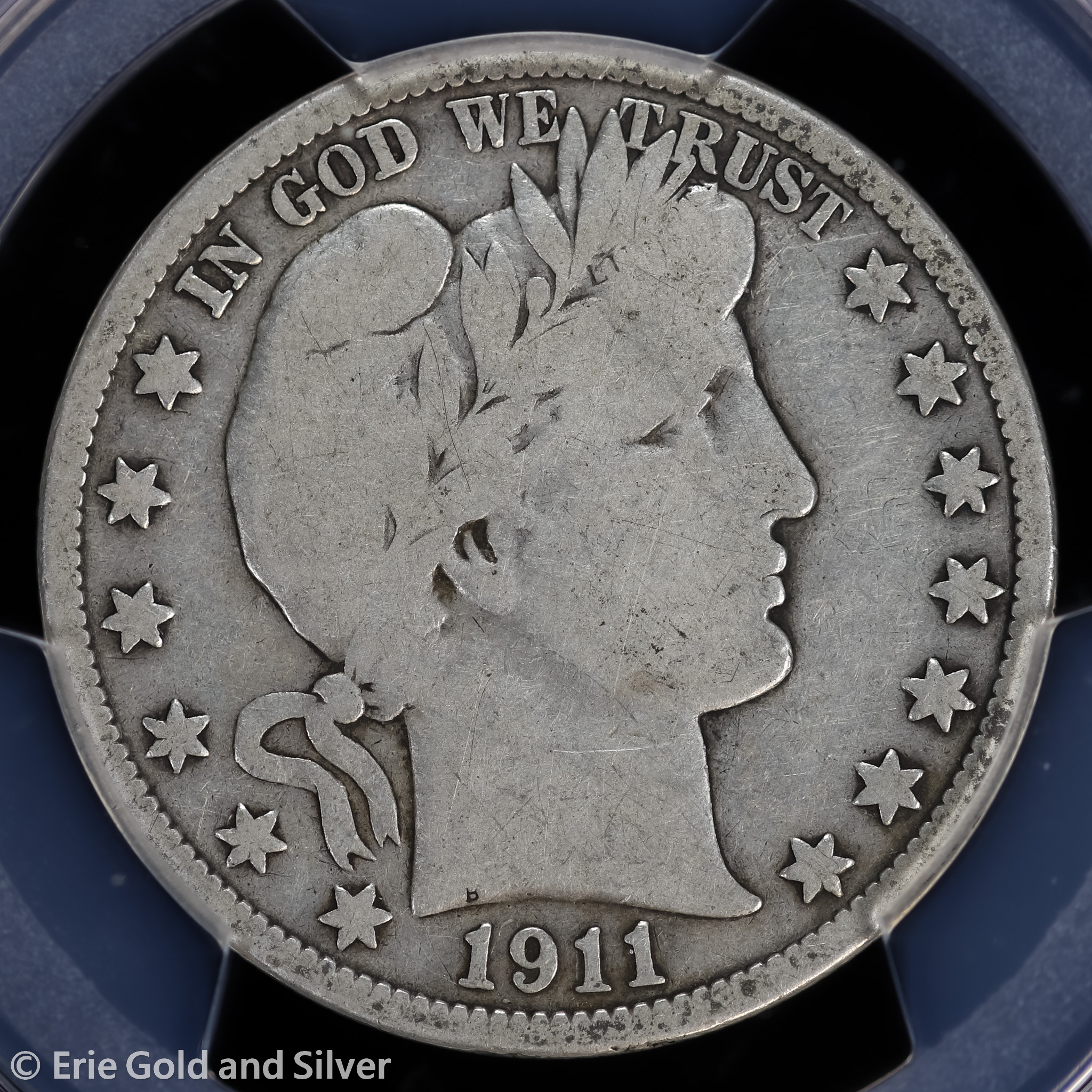 For sale is a 1911 Barber Half Dollar. Certified / graded by PCGS at VG 08.