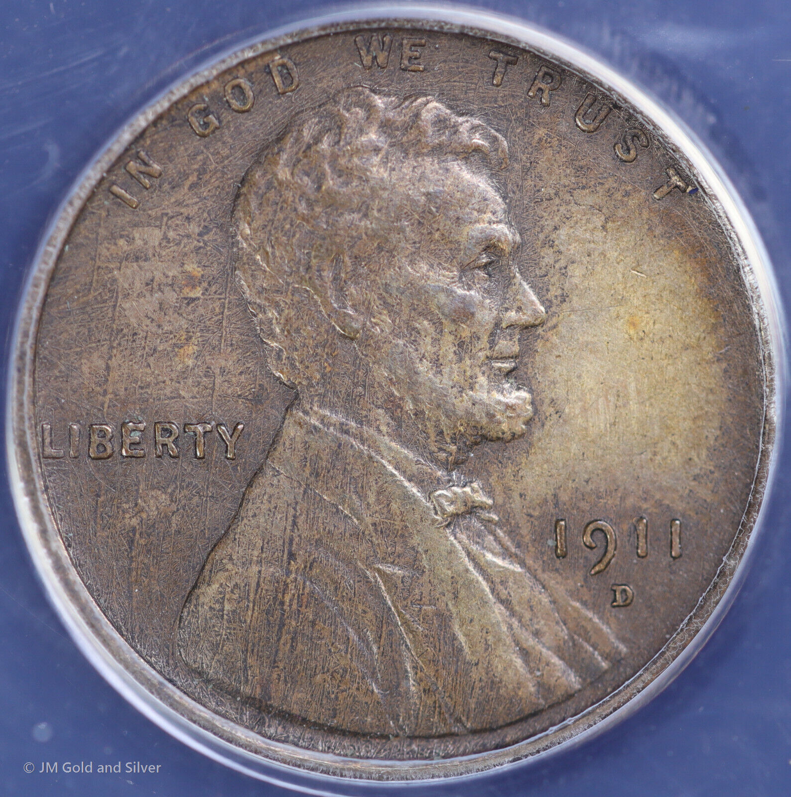 1911 D 1C Lincoln Wheat Cent ANACS AU 53 Details (Corroded)