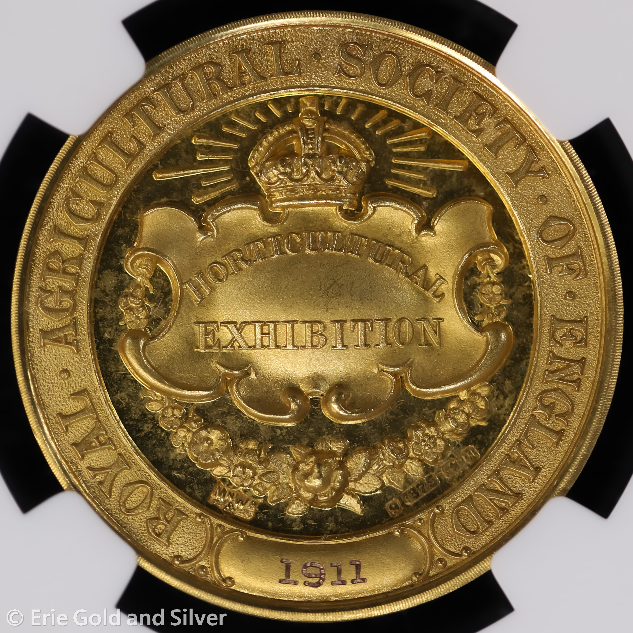 For sale is a "1911" GB Royal Agricultural Society of England Gold Proof Medal. Certified / graded by NGC at PR 64 Ultra Cameo.
