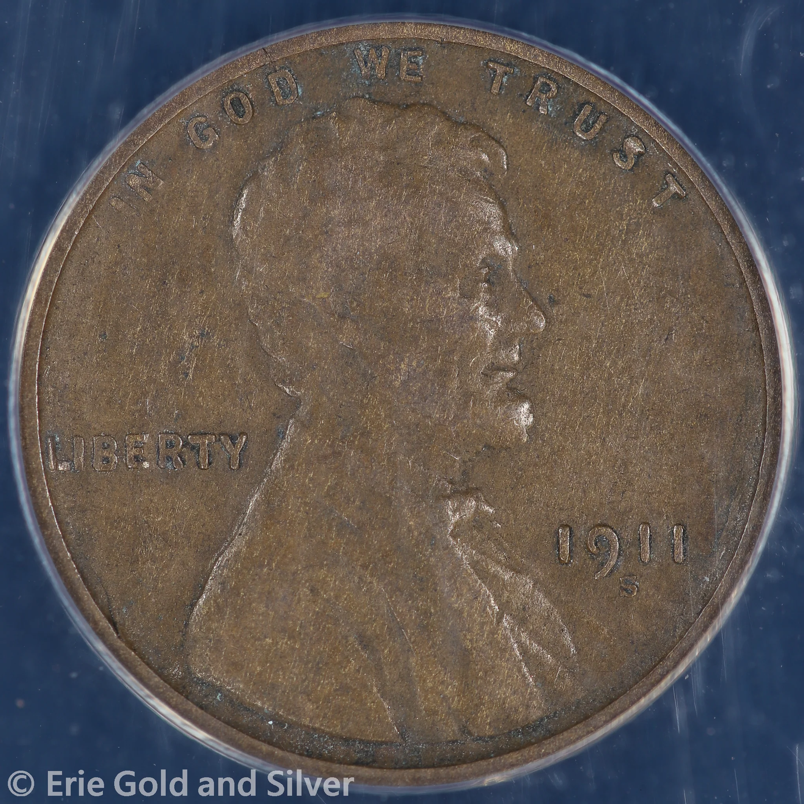 1911-S 1C Lincoln Wheat Cent ANACS VF 30